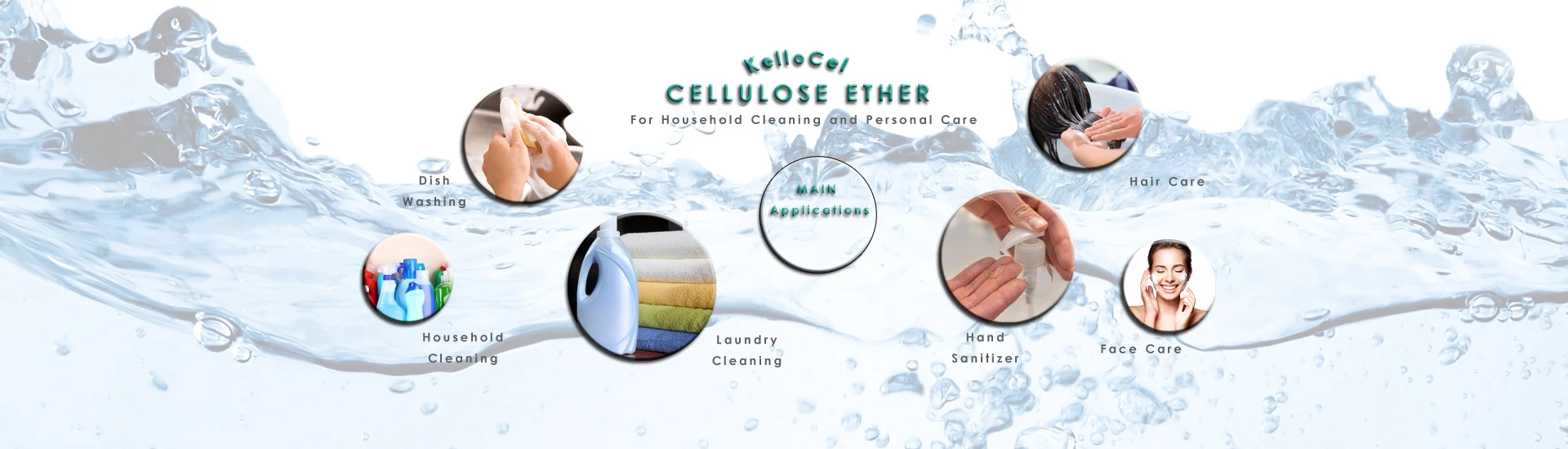 KelloCel™ molecules have emulsifying and protective colloid properties. They act as emulsifiers, rheology modifiers and foam stabilizers in detergent formula, to provide a better touch and visual effect.