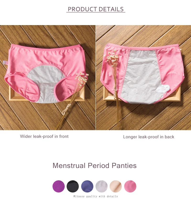 Production Name | Wholesale Leak Proof Menstrual Panties Physiological Pants Women Underwear Period Cotton Solid Color Waterproof Plus size Briefs |