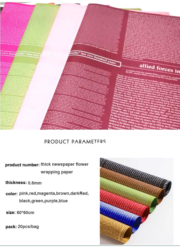 Product Name: | China factory wholesale custom luxury news paper double side printed waterproof flower bouquet wrapping paper | ||||