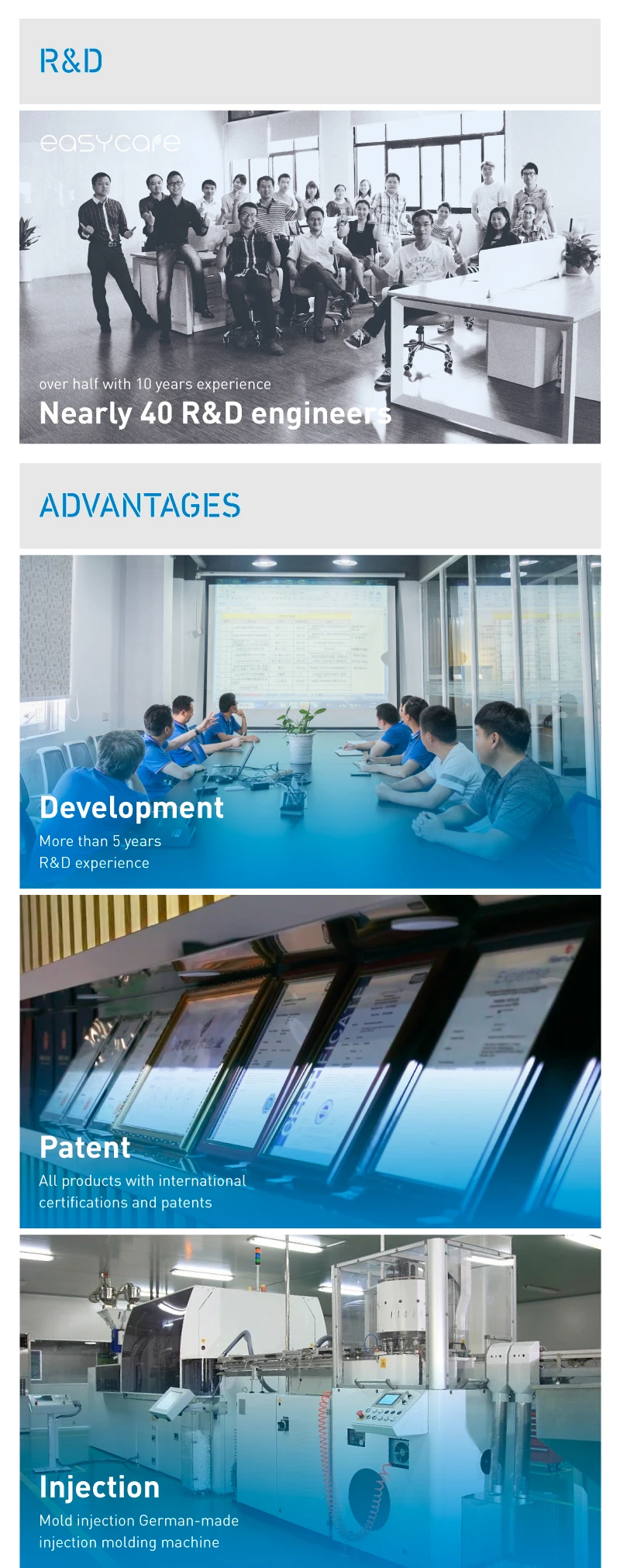 Shenzhen Easy Care Intelligent Technology Co., Ltd was established in 2014. Headquartered in Shenzhen, China, our organization has an area of more than 10000 square meters. We primarily manufacture air purifiers, ultraviolet sterilizers, while also engaging in research and development. Our markets include Europe, United States, Japan, South Korea. and Southeast Asia. All products have relevant patents and CE/FCC/RoHS certifications. Our company has strong industrial design, hardware, and software research and development capabilities, with more than 200 employees, including more than 40 R & D engineers. We have our own mold factory and SMT plant, are are also a certified OEM for Hewlett Packard and other major electronics organizations. In the future, we will continue to explore and provide quality and healthy products that enhances the lives of everyone who uses them.