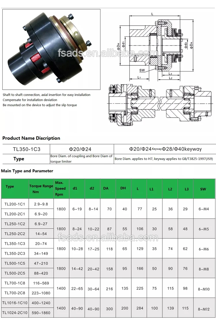 Aodisi TL Type Jaw Type Torque Limiter Coupling