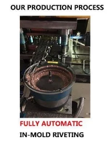 Wenzhou SAIJIN 's autostaking operation houses high speed high precision stamping presses, which produce in-die staked terminals, springs, and other electrical contact assemblies. In the in-die staking process, bimetal or solid contact rivets feed from a feeder system into the progressive stamping die. The stamping die then stakes the rivet into place and simultaneously produces the completed part.