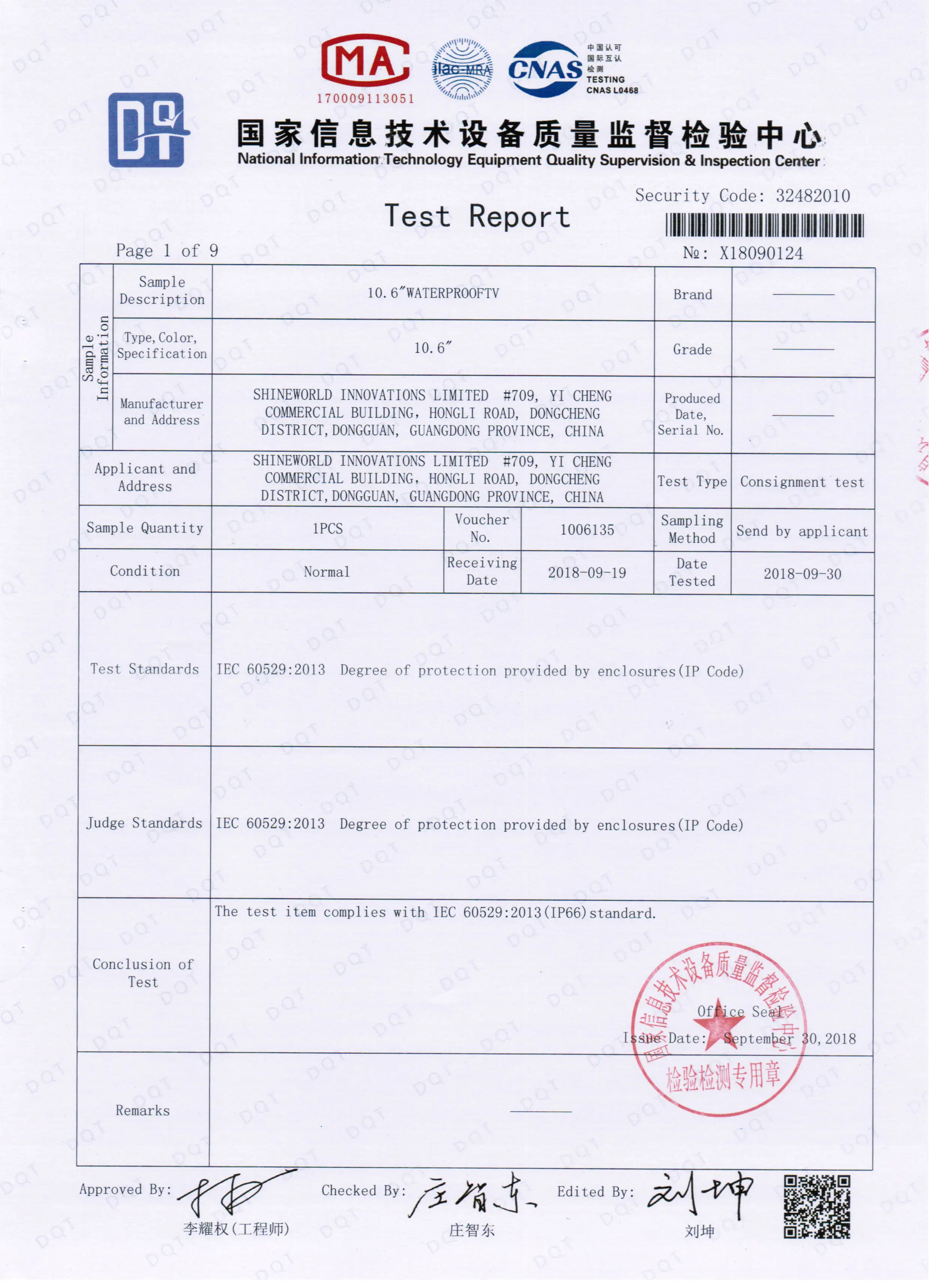 Dustproof/Waterproof | IP66 | IP66 | IP66 | IP65 | IP65 | IP65 | IP65 | |||||||