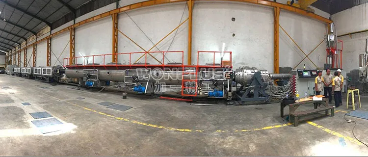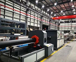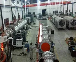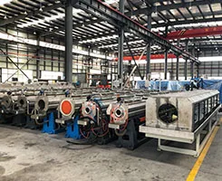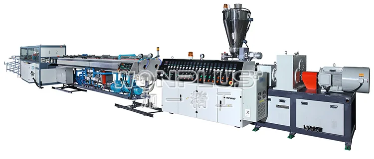 PVC extrusion line consists of conical twin-screw extruder, vacuum forming equipment, Haul-off machine, cutting machine, stacker and other components, with good stability and high capacity, easy to operate, reliable. The production line can produce water supply and drainage pipe, the material is U-PVC, C-PVC, large diameter PVC. and small diameter pipe for electricity wire conduit pipe. Full automatic control by SIMENS PLC computer.