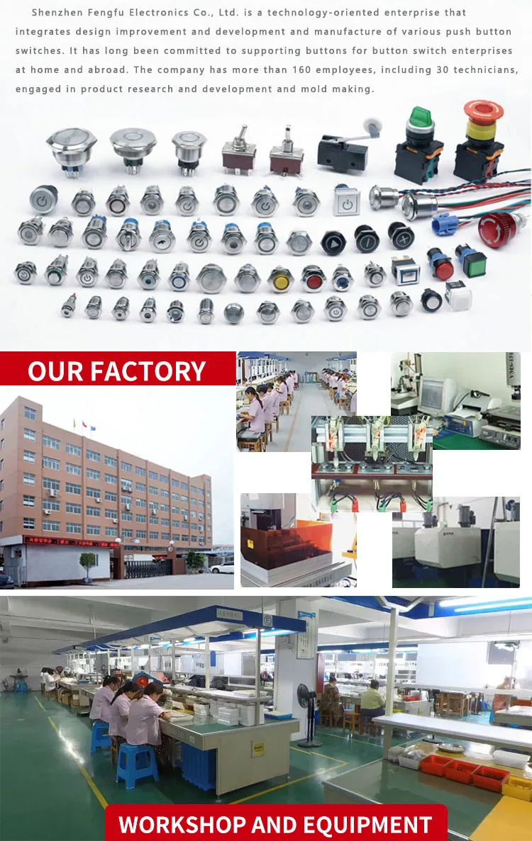 Shenzhen Fengfu Electron Co., Ltd is a professional manufacturer of electrical switches in Shenzhen, China. Shenzhen is famous and ranked as "the city of electronics of China", so we share the best electronics resources and talents, and have excellent logistics chains too.We are engaged in producing 9 categories and about 2,000 models of rocker switches,push button switches, toggle switches, micro switches, key switches,tact switches,dip switches,auto switches, indicator lights, fuse holders, power sockets, knobs, jacks and etc. Most of our products have passed safety certifications as UL, cULus, CE, CCC, CQC. and lots of our products are made with RoHS compliant materials.80% of our products are exported to Europe, North and South America. We satisfy all our customers with advanced products, competitive prices, fast delivery and one-stop service.With a principle of being creative, advanced and honest, we are always improving our products and services to better satisfy you customers. We believe it's our mission to boost our customer's business, and then our customers will reward us with leadership sales and long-term relationships.Join us, and we will be your best choice!