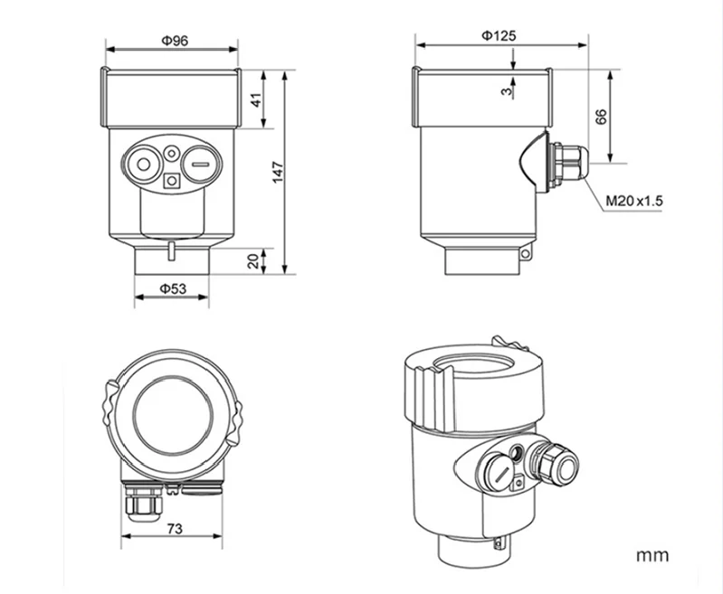 Output | 4-20mA (Hart optional), RS485 | |