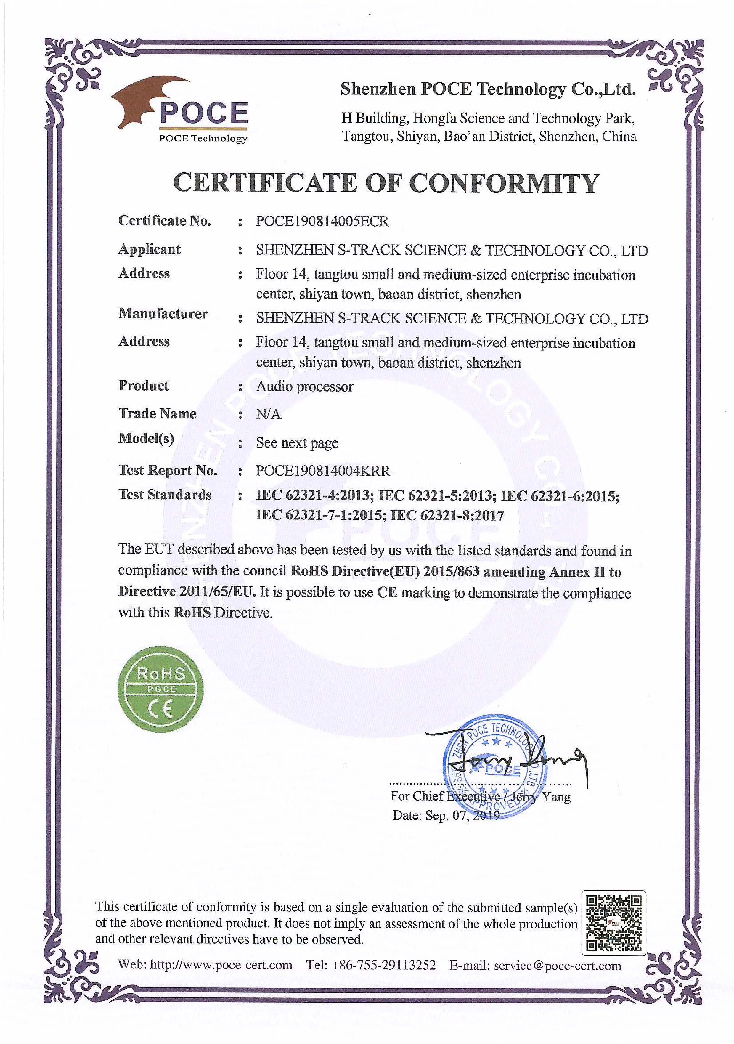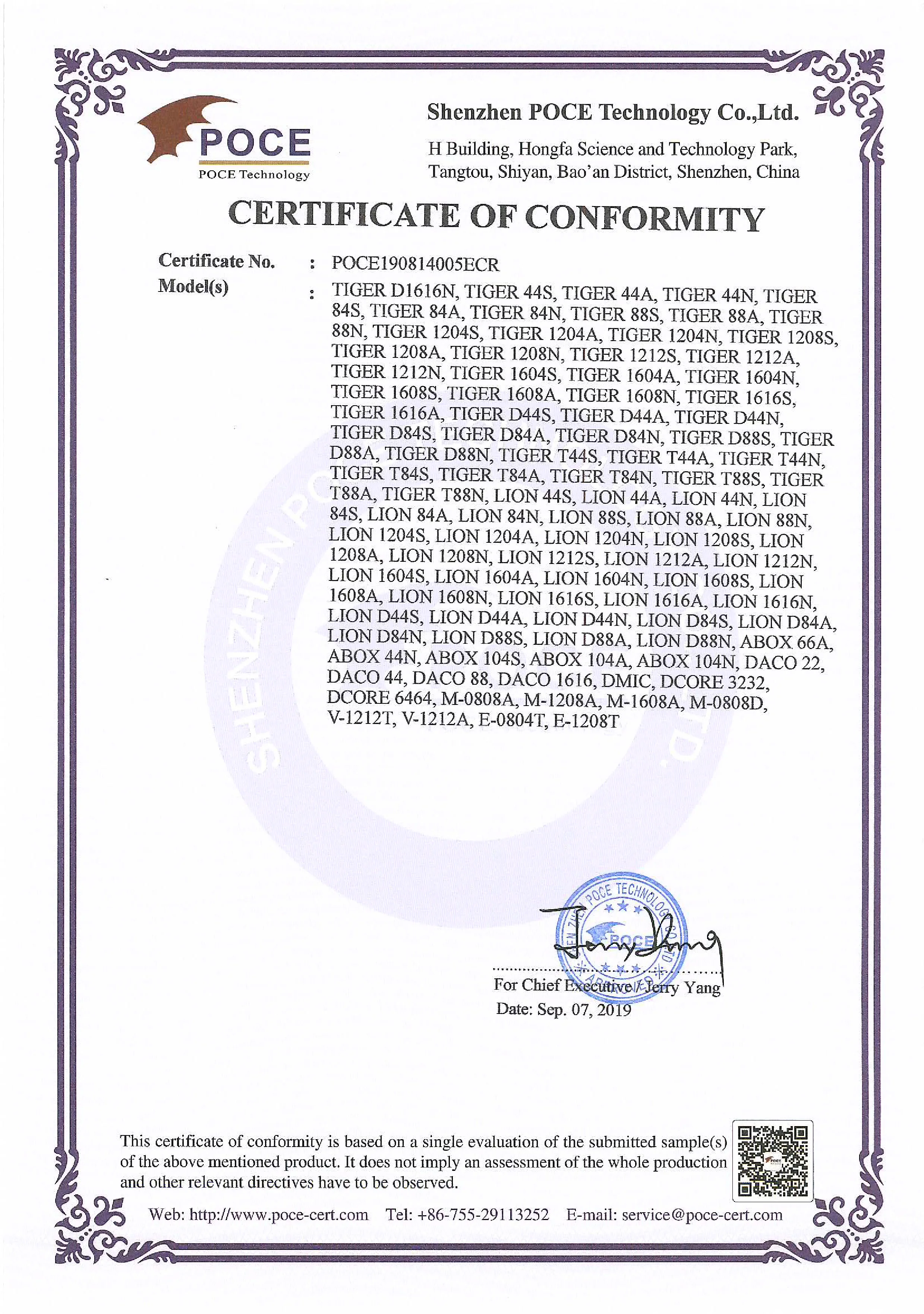 4.Q:What certificates do you have? A:Our products passed CE,ROHS,CCC,FCC,ISO9001 certificates.