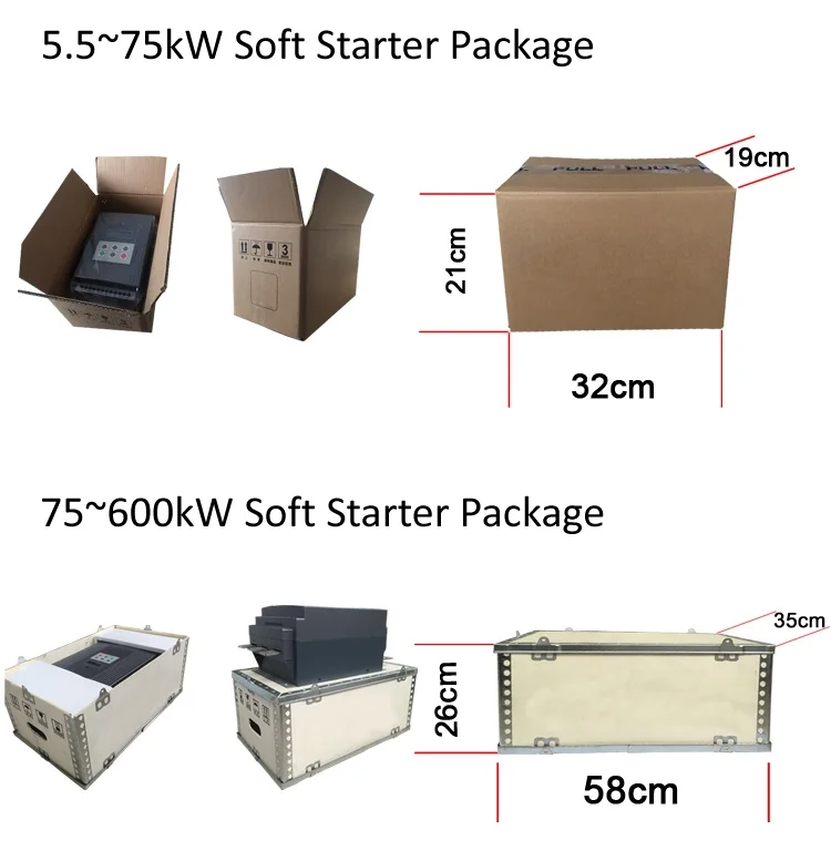 2. Suitable motor: Squirrel cage three-phase asynchronous motor and the motor reated power shall be match with soft starter power