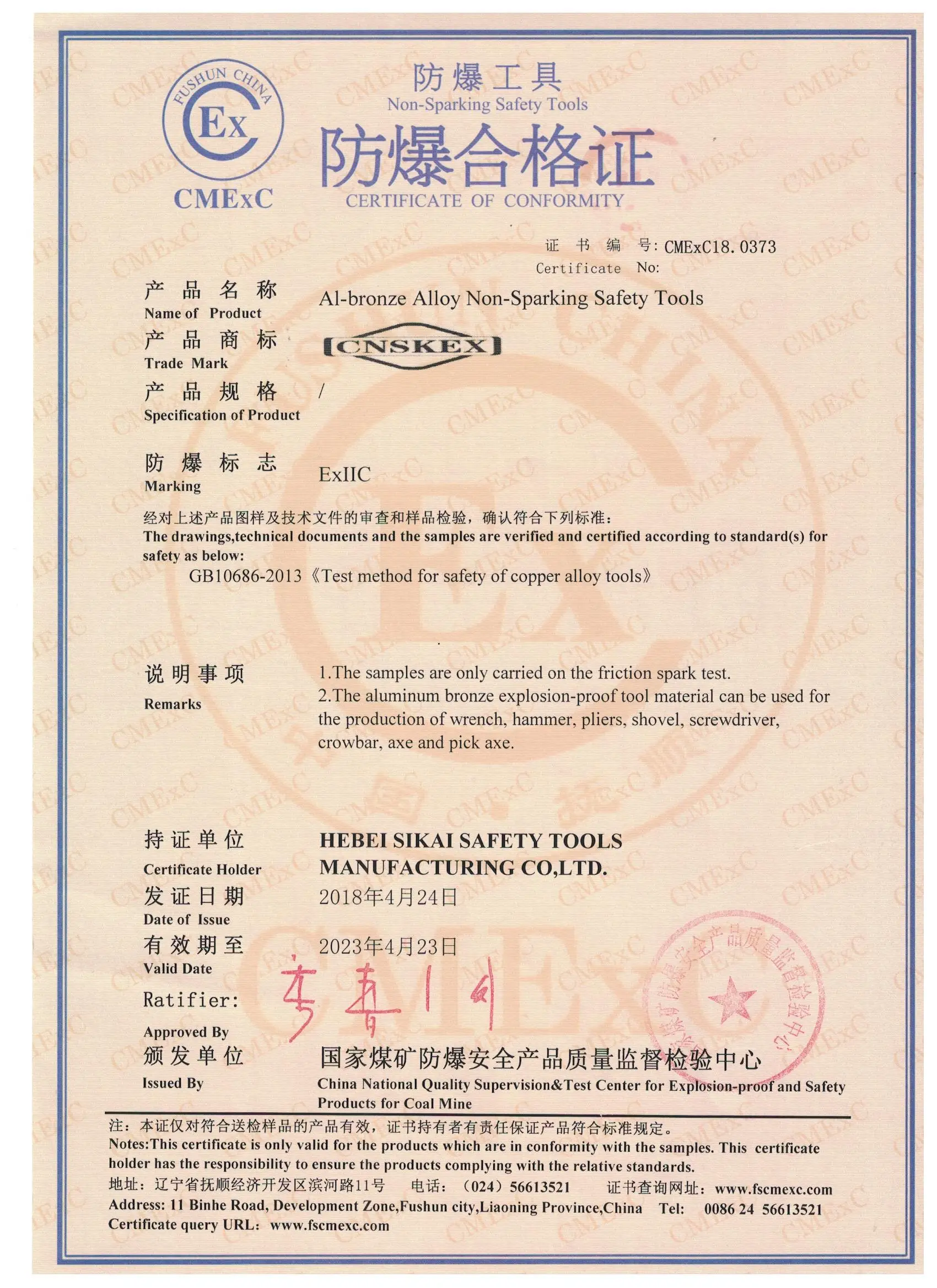 3.Composition:Aluminum bronze alloy tools: Al: 10%-12%, Fe: 4.5%, Ni: 4.5%, Other: 0.5%, Cu: Balance;