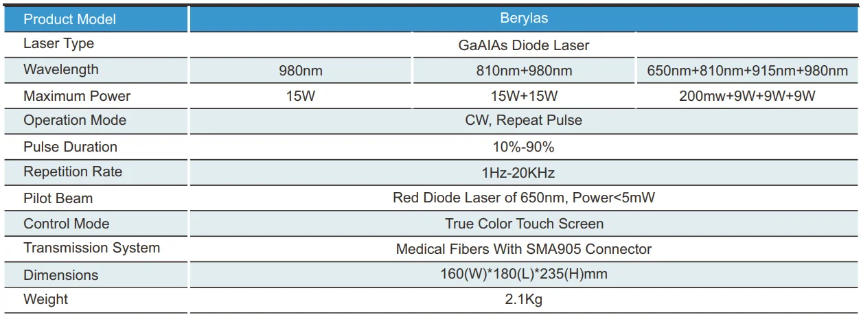 The Berylas is designed with full laser therapy and surgery handpieces, offering you one-stop service: