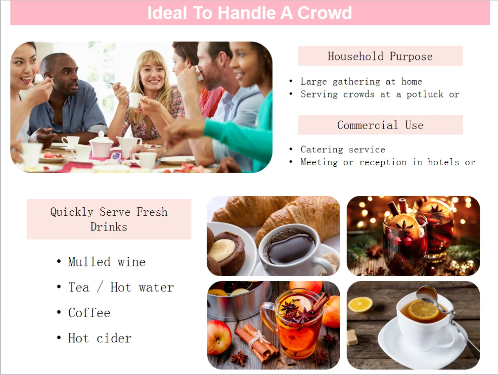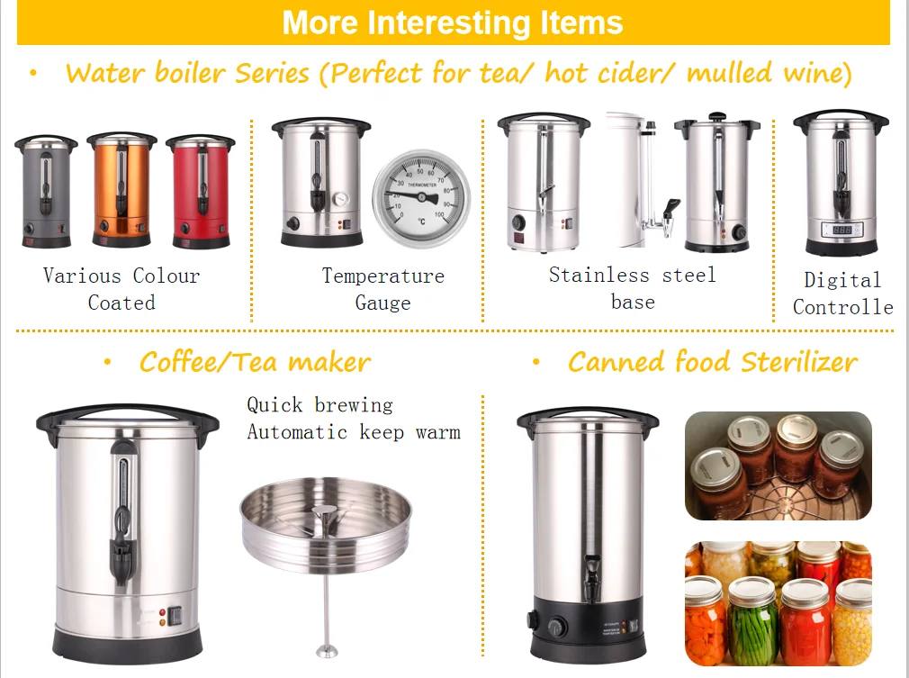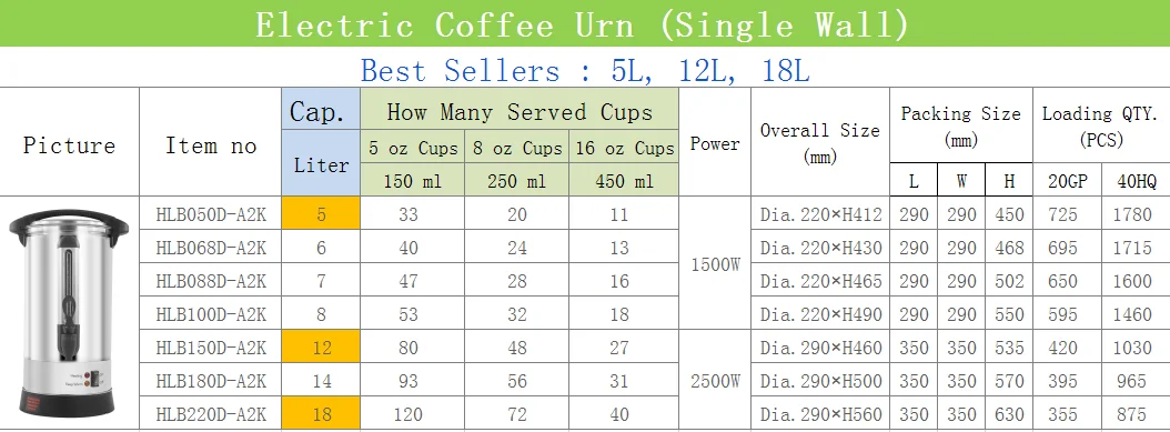 1. all our different size urns have a water level gauge, which ensure you never run out of hot water. | ||||||||