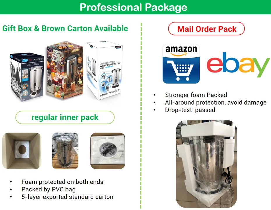 2.Our quality water urn also have a great warming feature, that allows the urn to detect the water temperature . which helps the urn to not be on a constant boil, allowing for maximum energy and power saving to take place. | ||||||||
