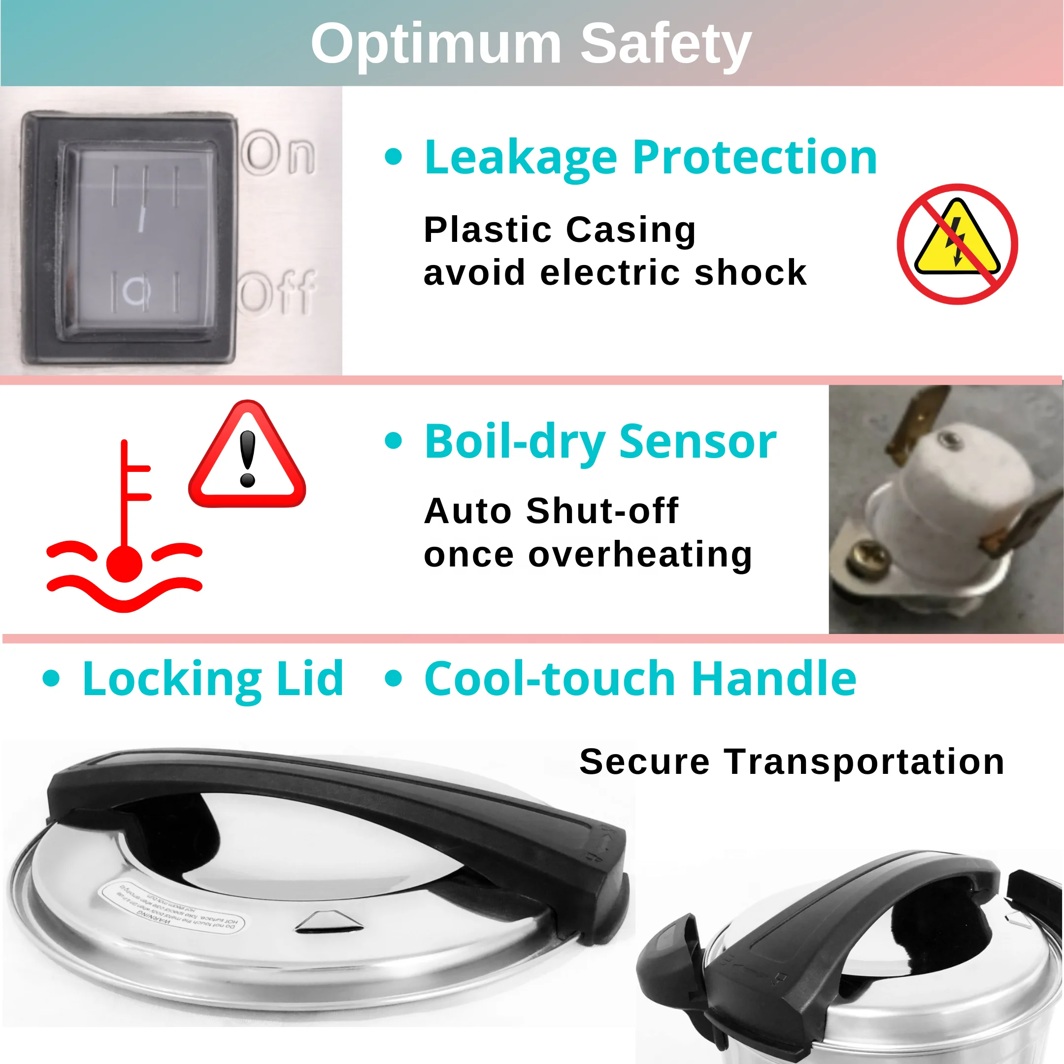 3.Another great feature and function which is built in. is the "Boil Dry Prevention" this Automatically will cut out once water levels in the urn are too low and at risk of burning out the unit. | ||||||||