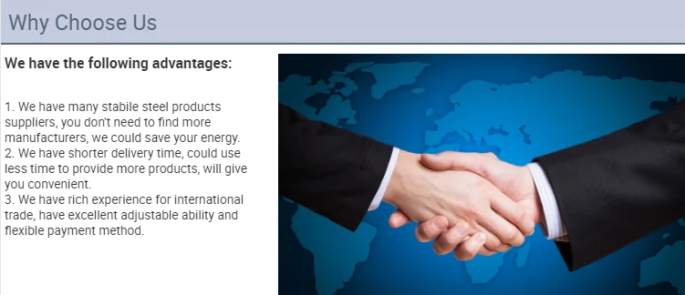 we have 18 years manufcture experiences of stainless steel product,PPGI,PPGL, Galvanized Steel ,Carbon steel ,angel steel in sheet /plate/coil /pipe.both sold to domstic and oversea which can reach 5 million tons per year.