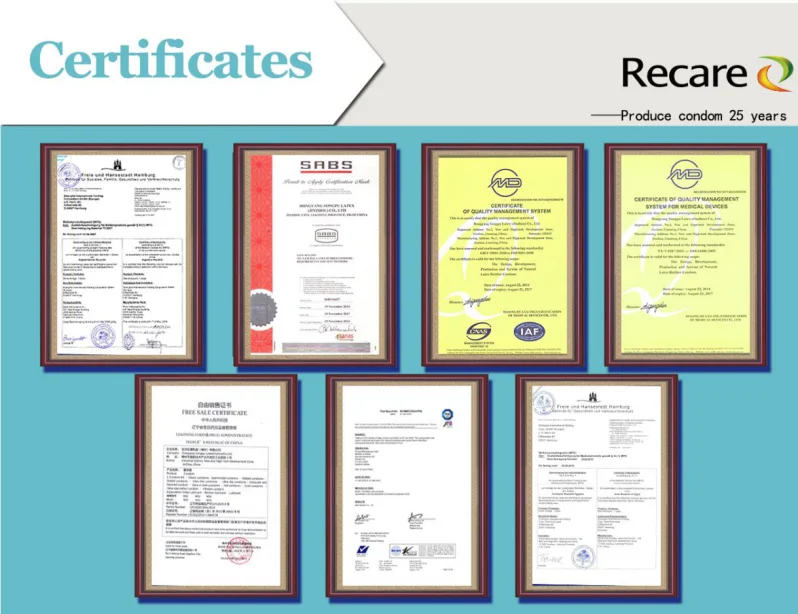 China Tianjin Recare Co., Ltd. is a pioneer in the condom manufacturing industry and distribution in China, has been in this line more than 20 years. We owned 8 producing line, the capacity is more than 1 billion pieces of condom. Our condom has sold in more than 160 countires and places. Condoms supplied by Recare are highly regarded for durability and reliability in the world wide government tenders, commercial markets and non-commercial markets.