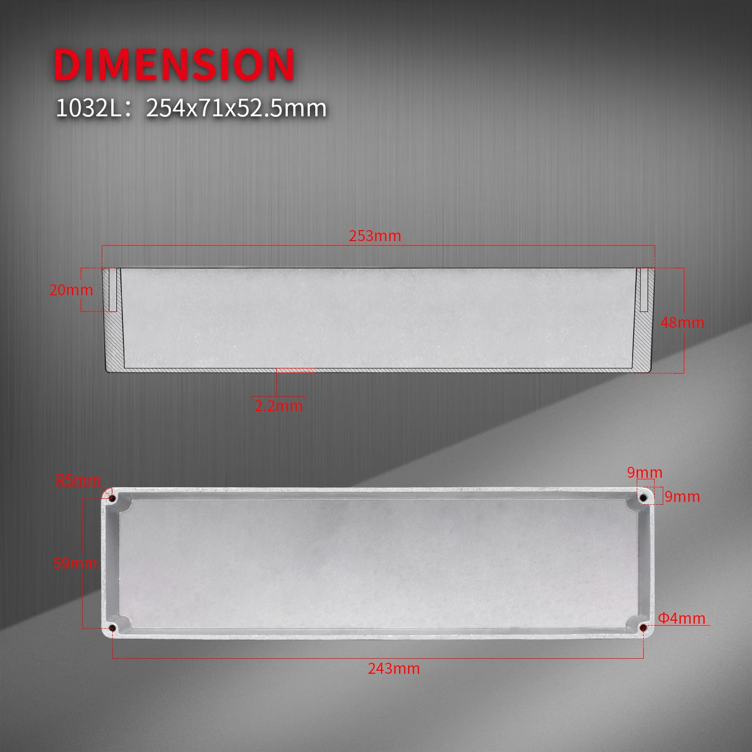 1032L 254*71*52.5mm Aluminium Unfinished Metal Stomp Box Aluminum Enclosure for Guitar Effect Pedal Footswitch