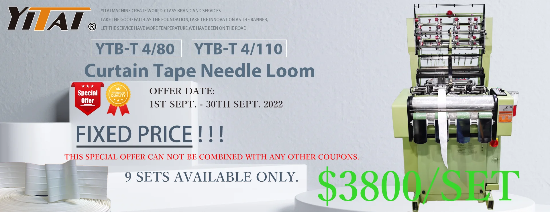 Optional attachment | Beams, rubber feeder, back take-off device, double hook single needle system, creel | |||||||||||||||
