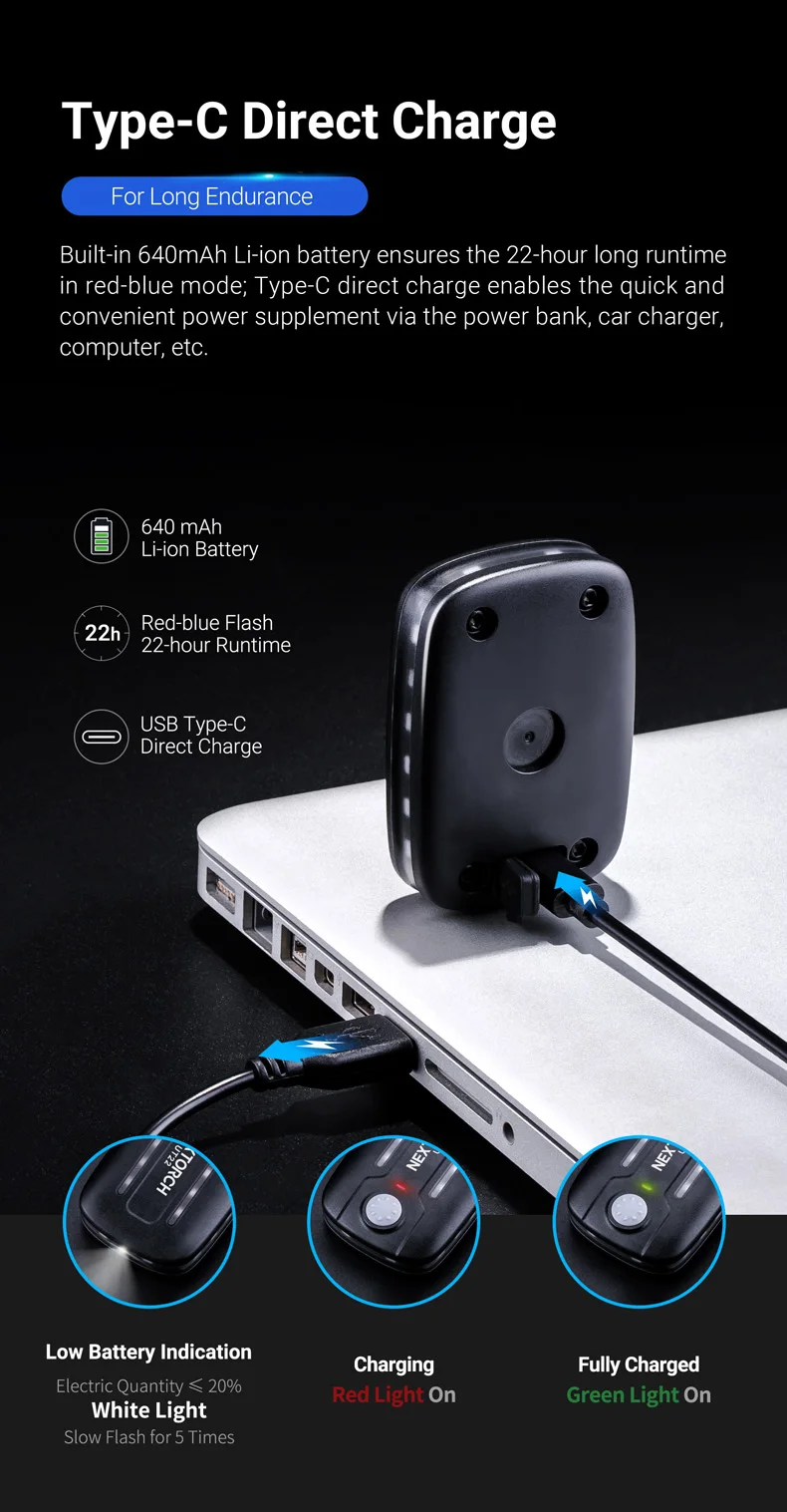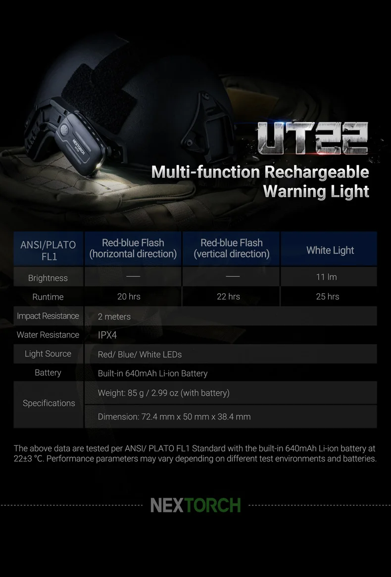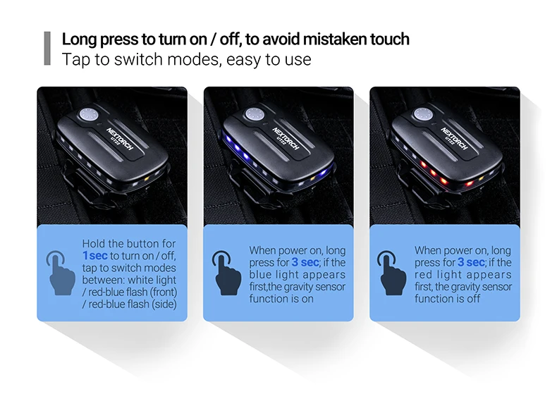 UT22 Nextorch tactical flashlight warning safety light sensor motion blue red flash light LED rechargeable