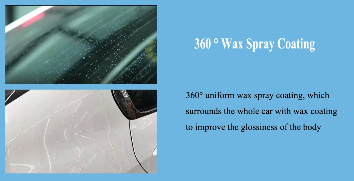 High-pressure flushing (standard/strong) | The water pressure of the water pump nozzle can reach 10MPa, and the robot arms of all equipment wash the body at a constant speed and pressure. Two modes (standard/power) can be selected. |