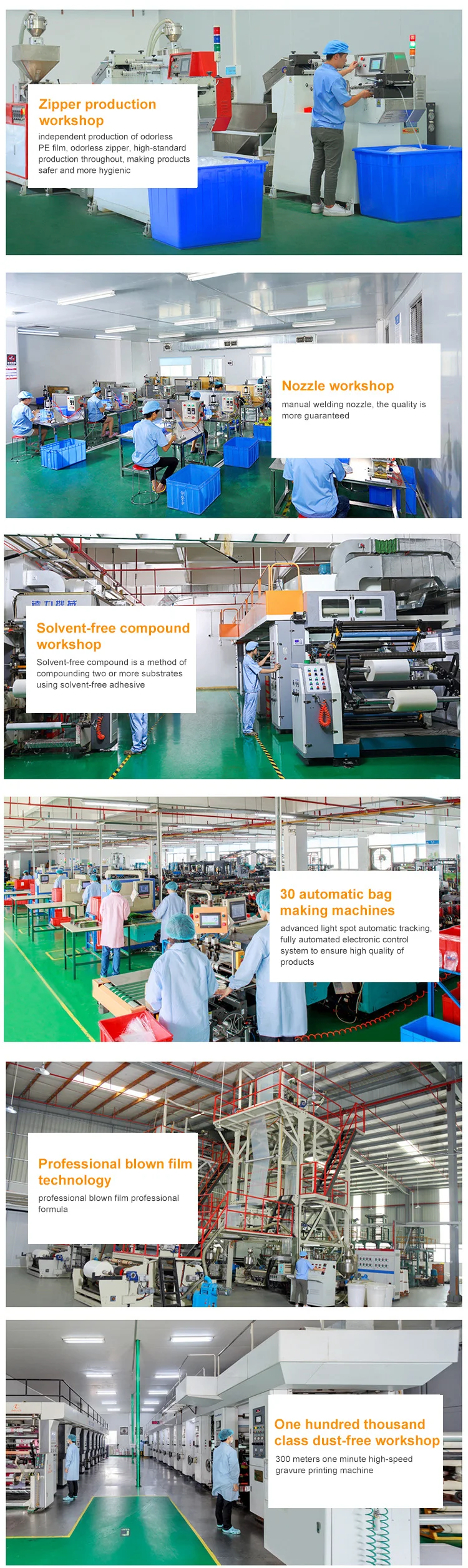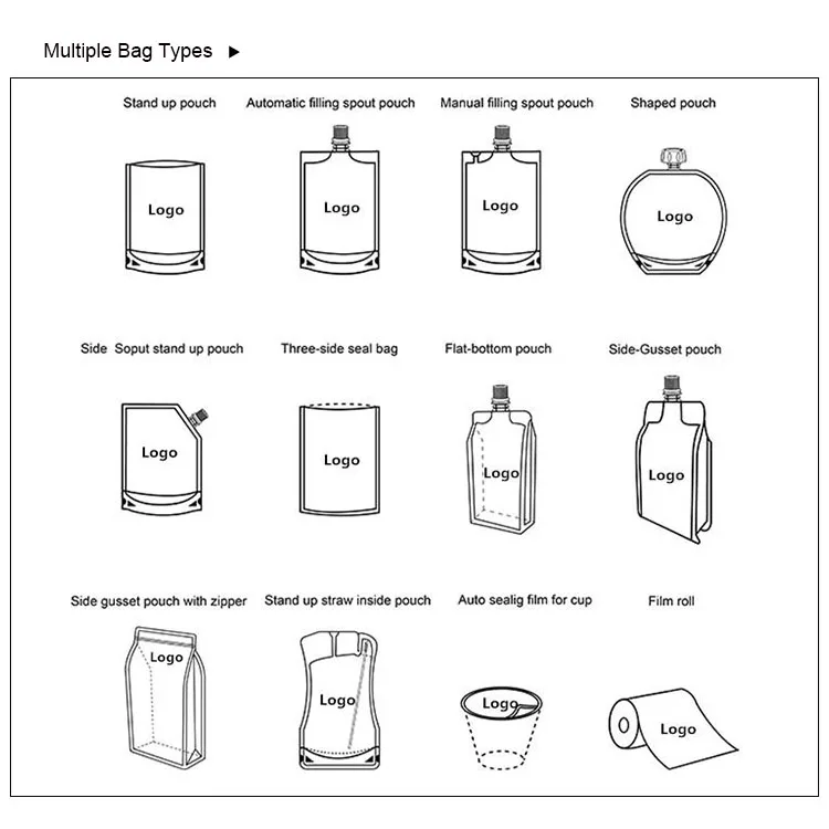 Bag types | Stand up pouch, flat bottom bags, kraft paper bags, spout bags, aluminum foil bags, ziplock bags, middle sealing bags, three-side sealing bags, coffee & tea bags, commodity packaging bags etc.. | ||||||