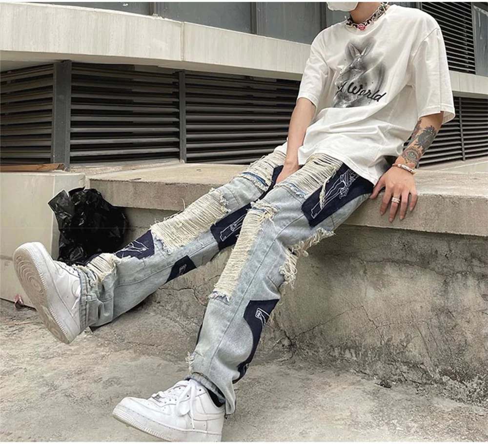 Product Name: | Manufacture custom design patchwork distressed ripped printed regular fit men's jeans | |||||||