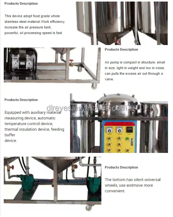 Edible oil refining machine FeaturesSmall scale edible oil refining machine coconut crude oil refinery machine features :