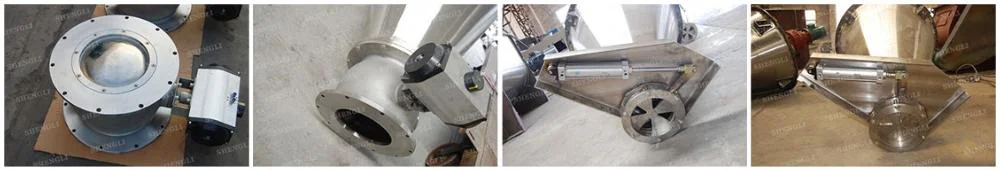 Spherical valve has excellent sealing effect to powder, liquid and even in the negative pressure state.Plum-blossom dislocation valve is easy to operate and control the discharging speed.