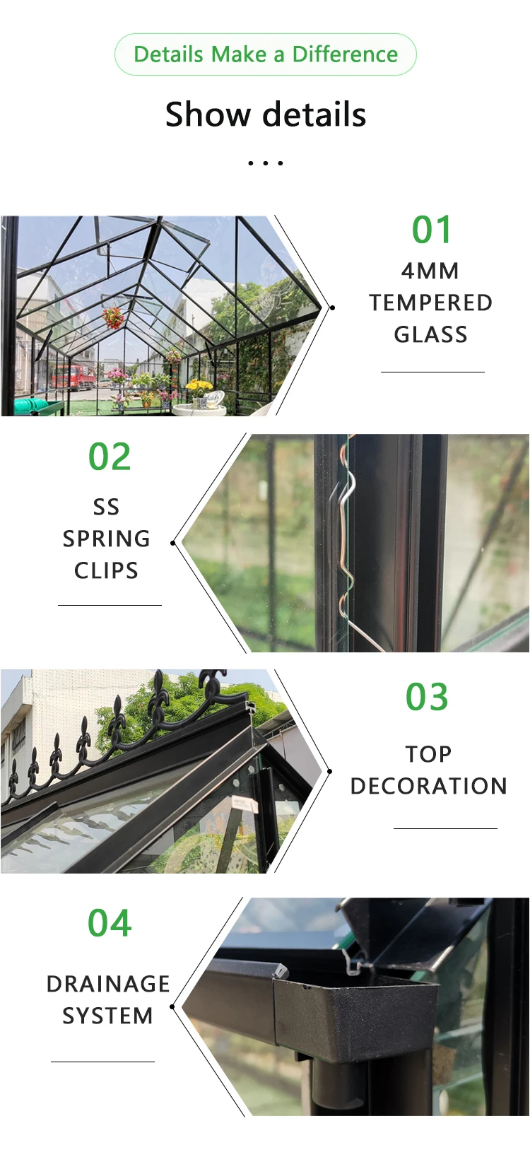 heavy duty garden glass metal green house aluminum frame outdoor glasshouse kit luxury prefab winter plant greenhouse for home