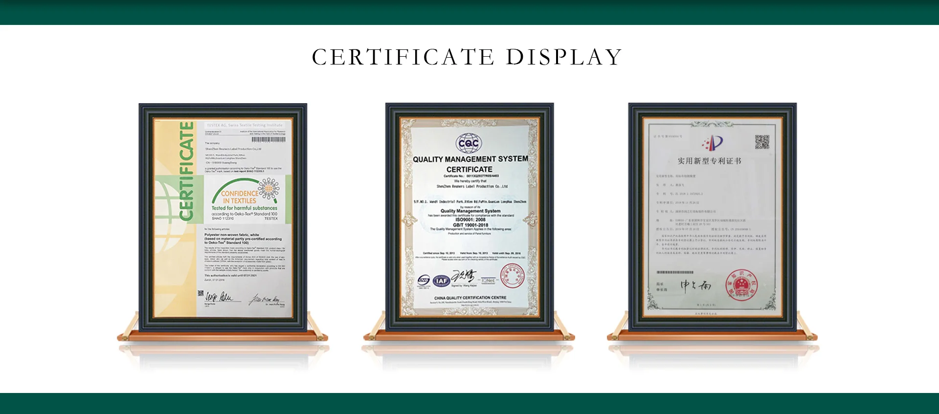 Built in 2005, Reuners Label is a professional garment accessory factory in Shenzhen China. Reuners's products include woven label, woven patch, embroidery patch, print label, hang tags, ribbon, paper tag ect.