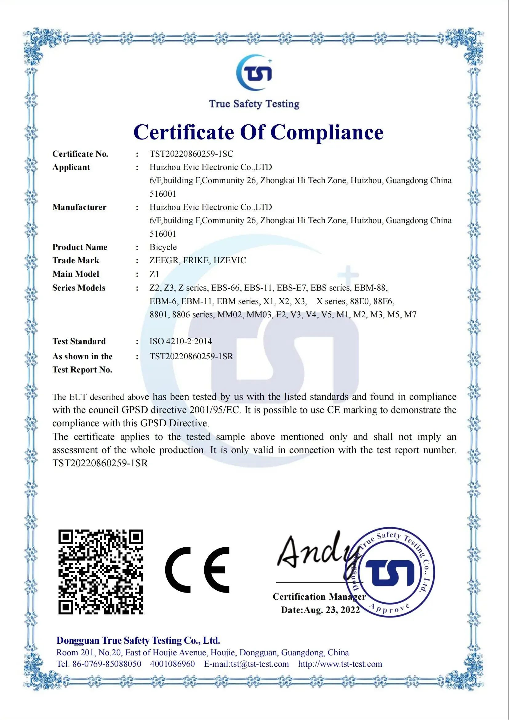 Maximum Loading | 150kg | Certification | CE/UL/ISO4210 |