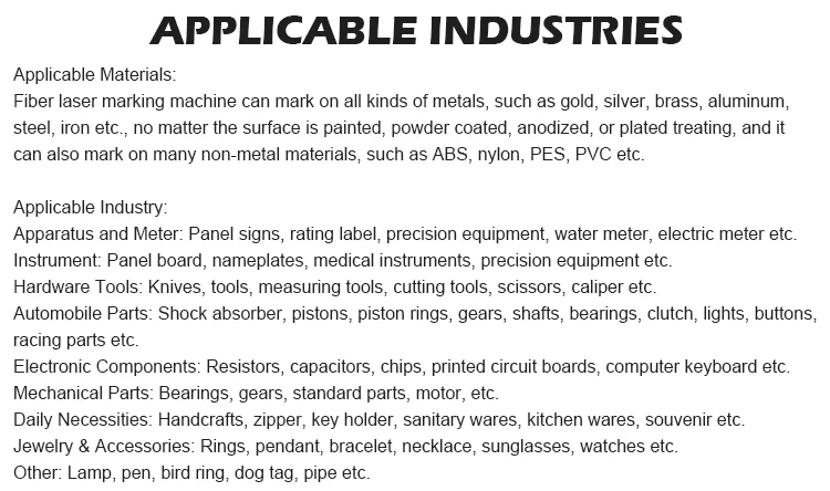 A: We will help you choose the suitable machine and give you solution, you can tell us the material of product, shape of workpiece, marking position, marking content size, and marking depth requirement.