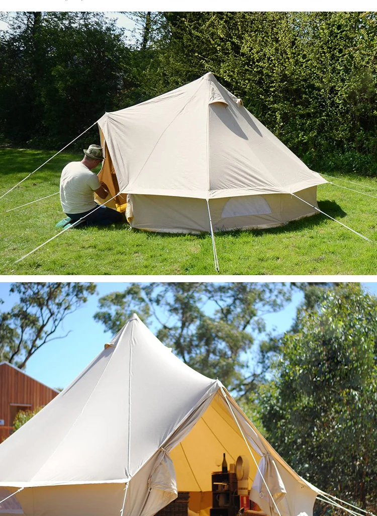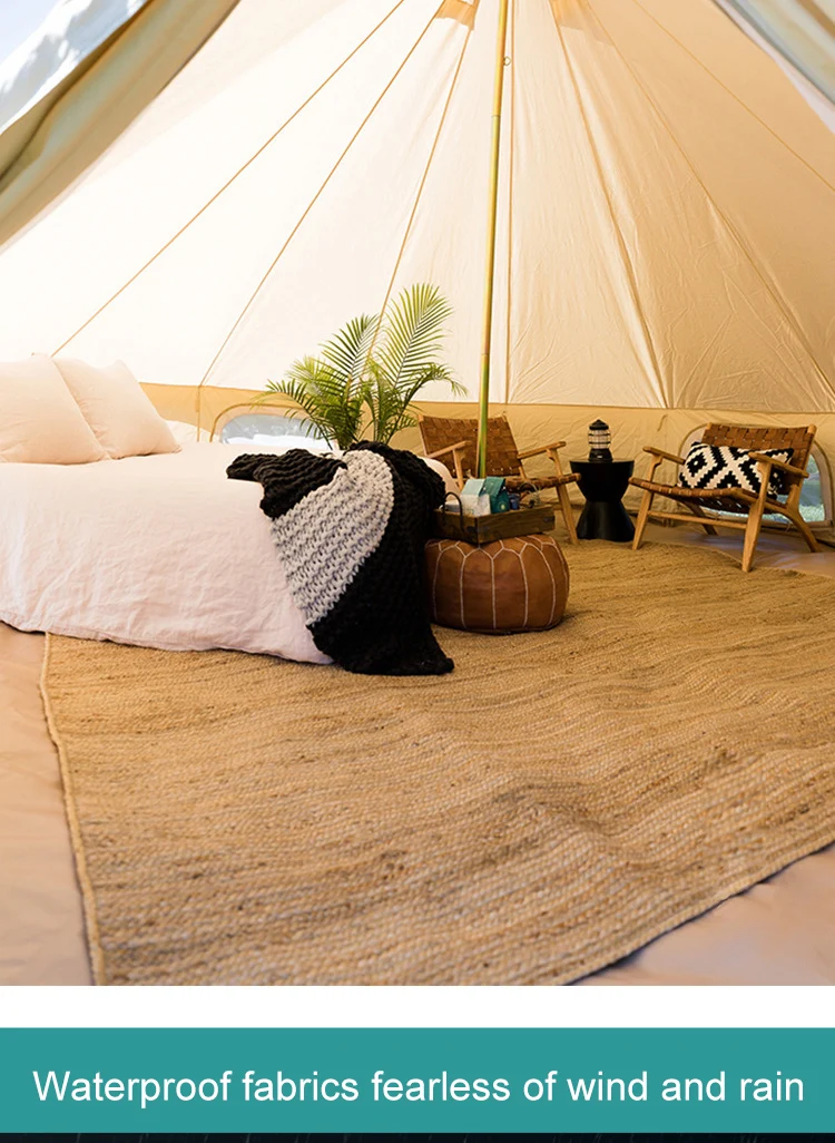 Custom luxury glamping 3m 4m 5m 6m cotton canvas yurt tenda bell tent for outdoor camping