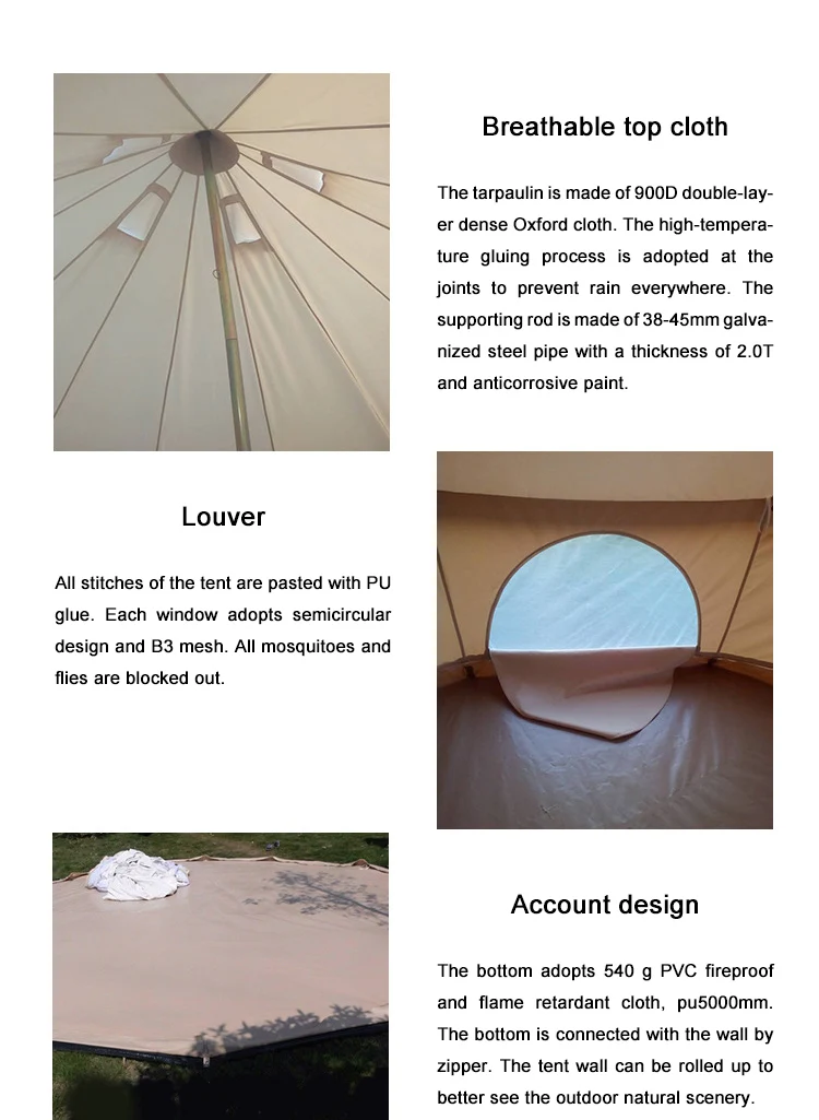 | Product Name | Custom luxury glamping 3m 4m 5m 6m cotton canvas yurt tenda bell tent for outdoor camping |