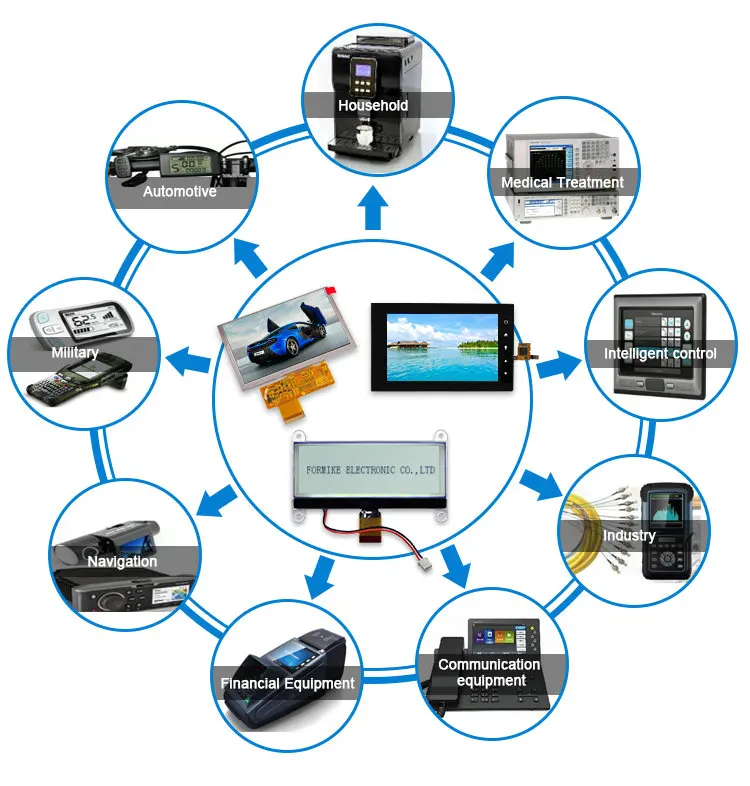 The LCD products can be used for many kinds of field,such as:Telecommunication Devices;Consumer Products;Technical Equipment;Medical Equipment;Industrial Equipment;Home Appliance;Automotive;White Goods etc