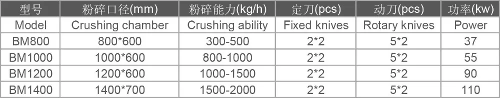1, Applicable for crushing general plastic materials. Including bottle,film,bucket,container,basket,sheet,pipe etc.