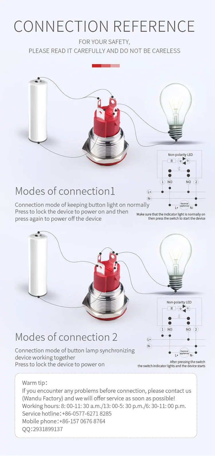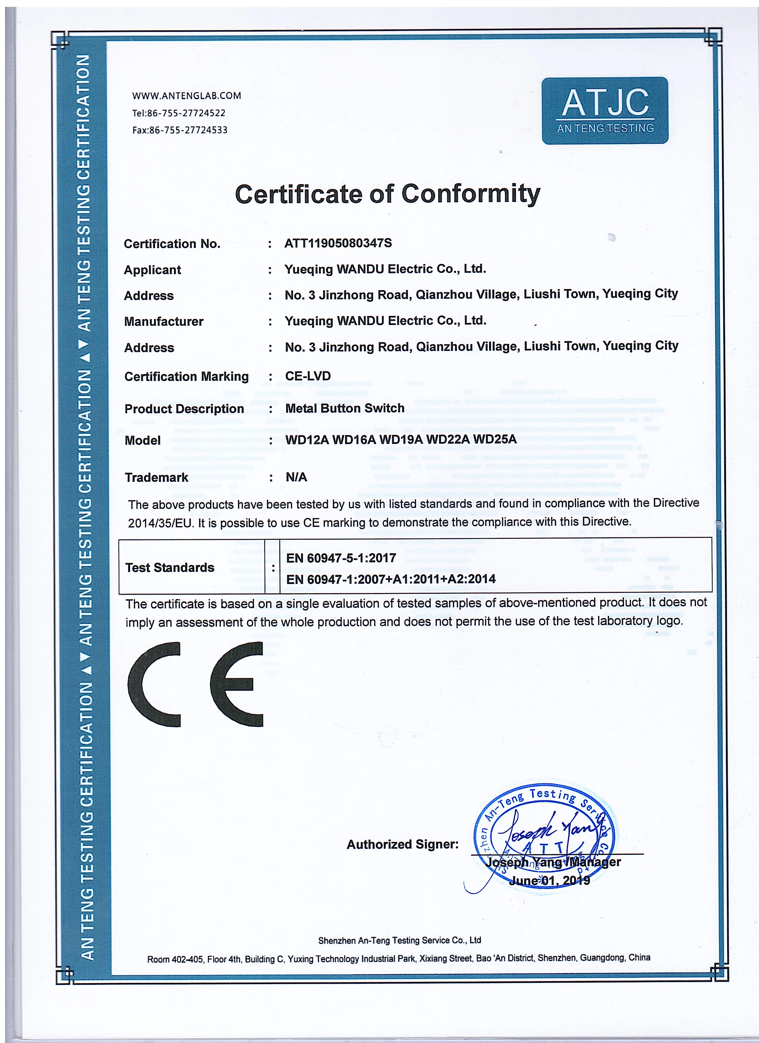 Zhejiang Wandu Electric Co.,Ltd is a professional manufacturer of electrical switches in Yueqing, China. Yueqing is famous and ranked as "the city of electronics of China", so we share the best electronics resources and talents, and have excellent logistics chains too.We are engaged in producing 9 categories and about 2,000 models of rocker switches,push button switches, toggle switches, micro switches, key switches,tact switches,dip switches,auto switches, indicator lights, fuse holders, power sockets, knobs, jacks and etc. With years of export trade experience, We have independent production plants, up to 2000 square meters.We have a professional R&D team, quality control personnel, and a complete production process.