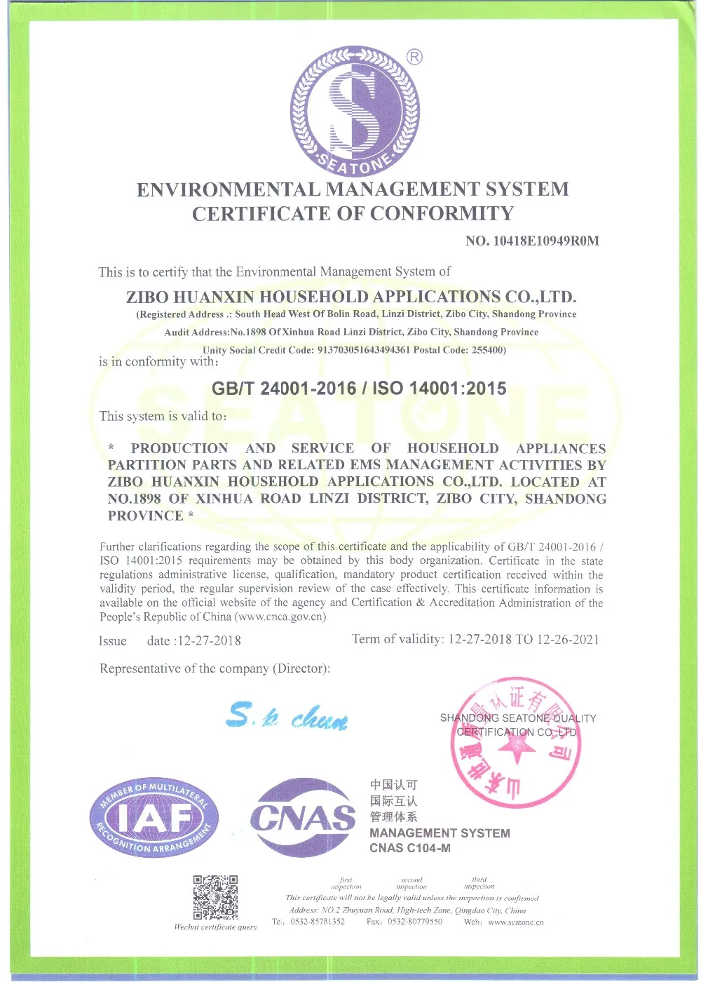 ROHS REACH ISO14001 ISO9001