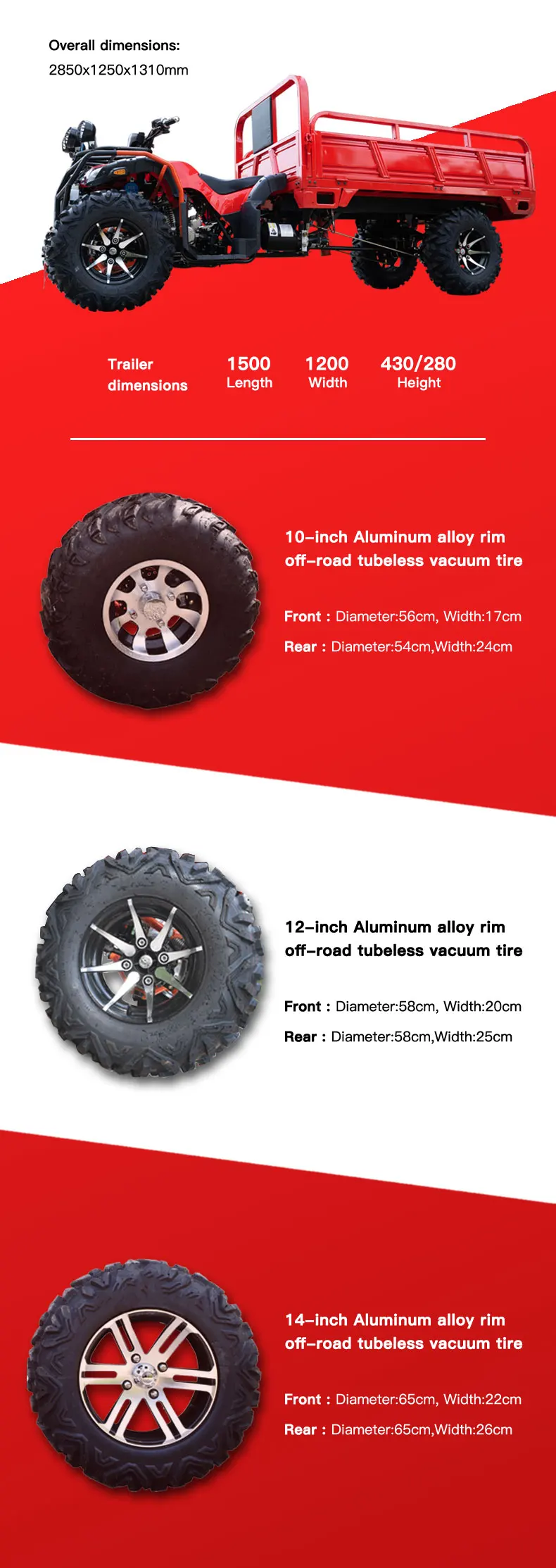 Displacement | 250cc/300cc/350cc | Vehicle Size | 2450mm*1240mm*1200mm |