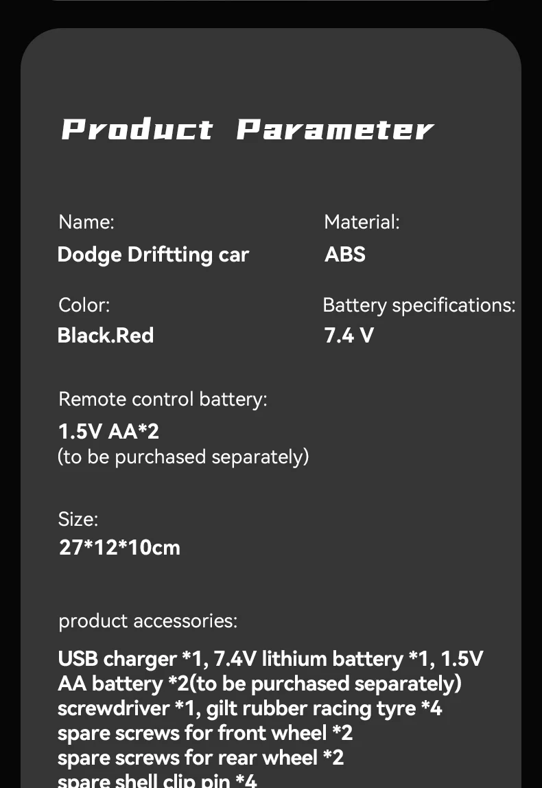Controller Battery | 1.5V 2*AA (not included) |