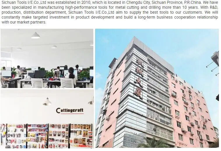1. Professional Manufacturer of high-performance tools for metal cutting and drilling. 2. We develop,produce and sell tools that deliver more performance with less effort: due to faster work progress,better results,longer lifetime. 3. Want to further strengthen our market share as a tool specialist by making targeted investments in product development, by using our own high-quality manufacturing standards and by working together with strong market partners. 4. Have been in this field for 7 years. We hope to establish a long-term business relationship with our customers. 5. Have attended many Exhibitions both in domestic and other countries.