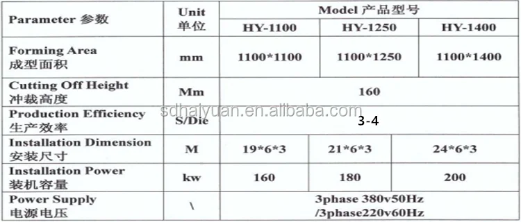 sheet machine / forming machine parameter as following :