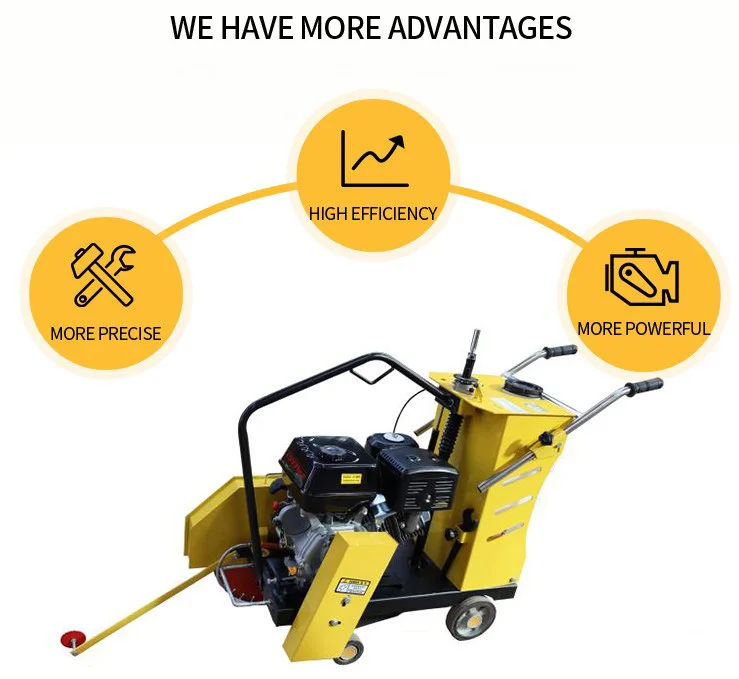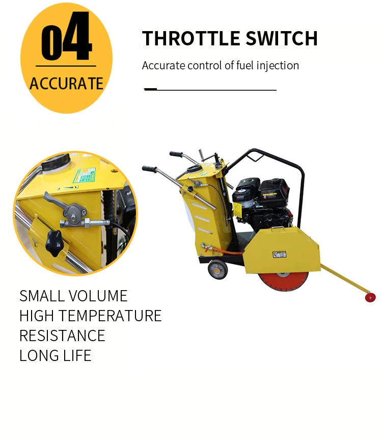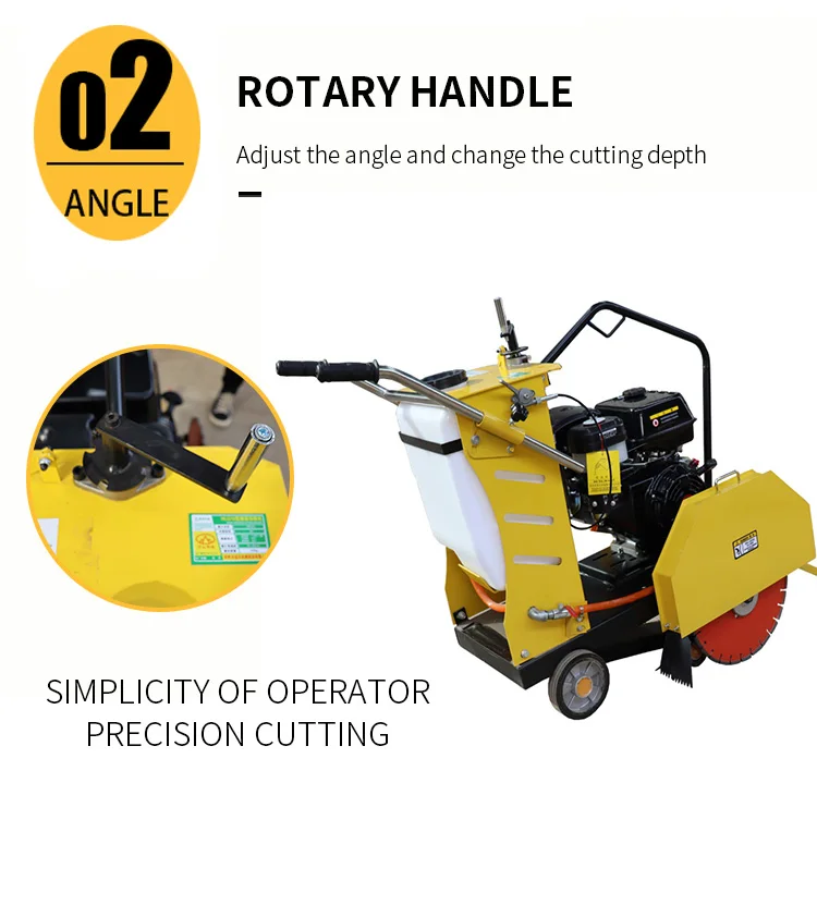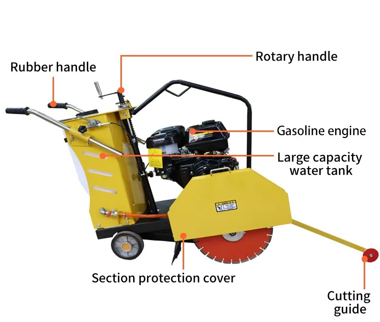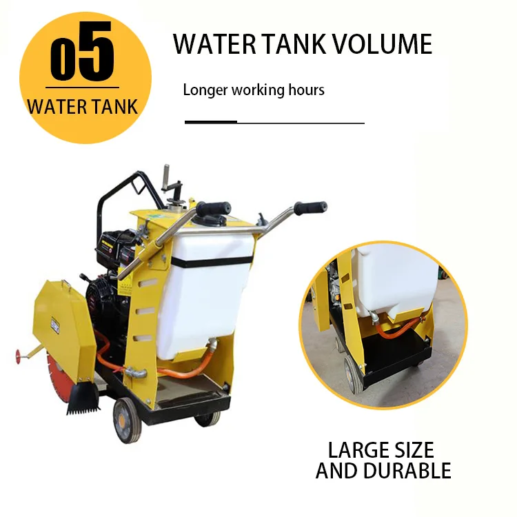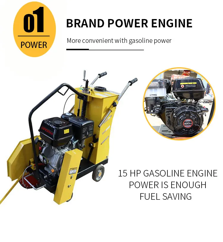 Concrete Cutter used for road repair or groove cutting on road, municipal, construction, communications departments to cut road. Equipped international. Honda engine, high quality, superior performance and easy to start. Mainly bearing adopts international band external spherical centripetal bearing. It can ensure the machine suits high pressure and high speed working condition. The significant friction generated in cutting hard substances like concrete usually requires the blades to be cooled to prolong their life and reduce.