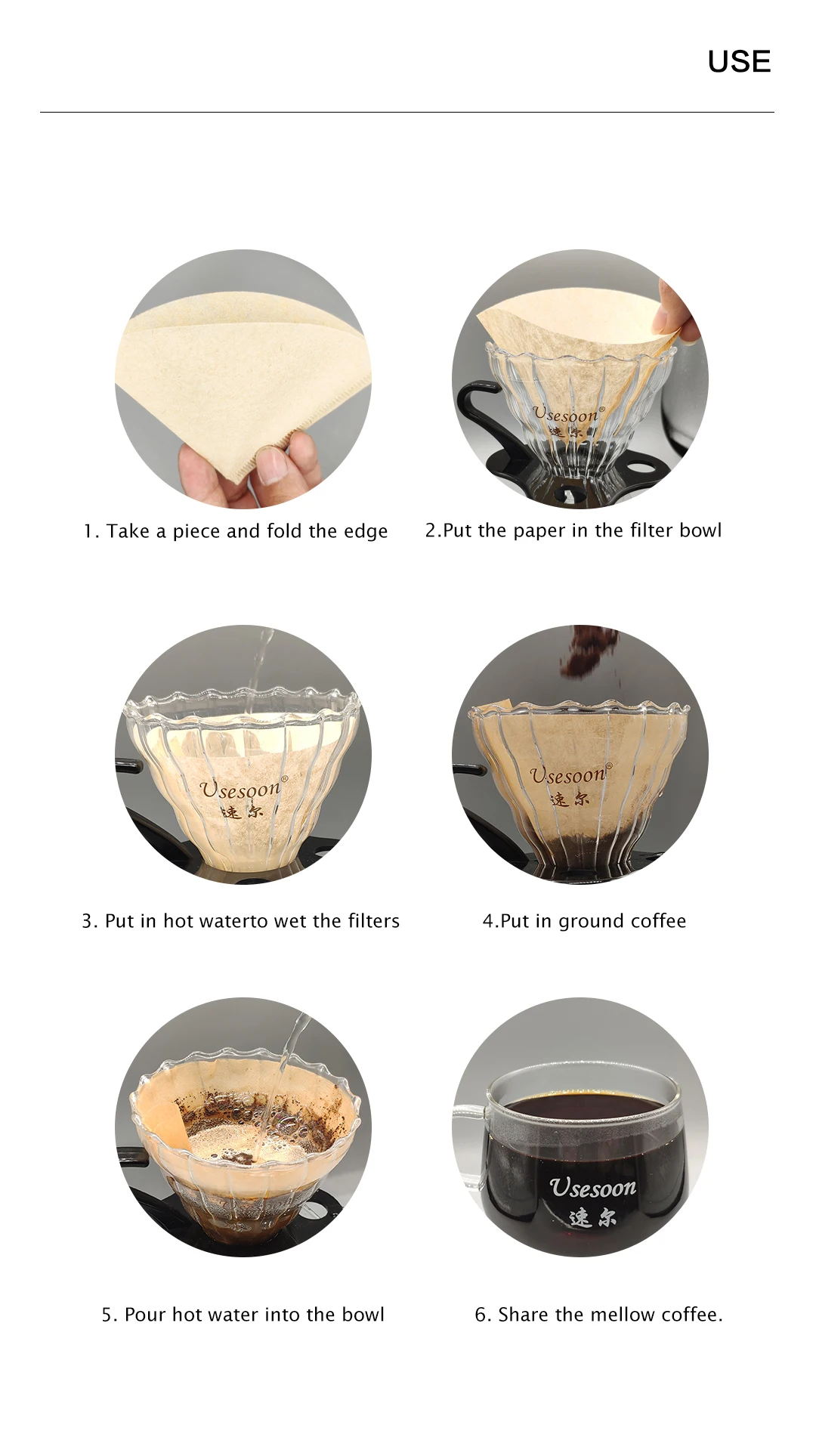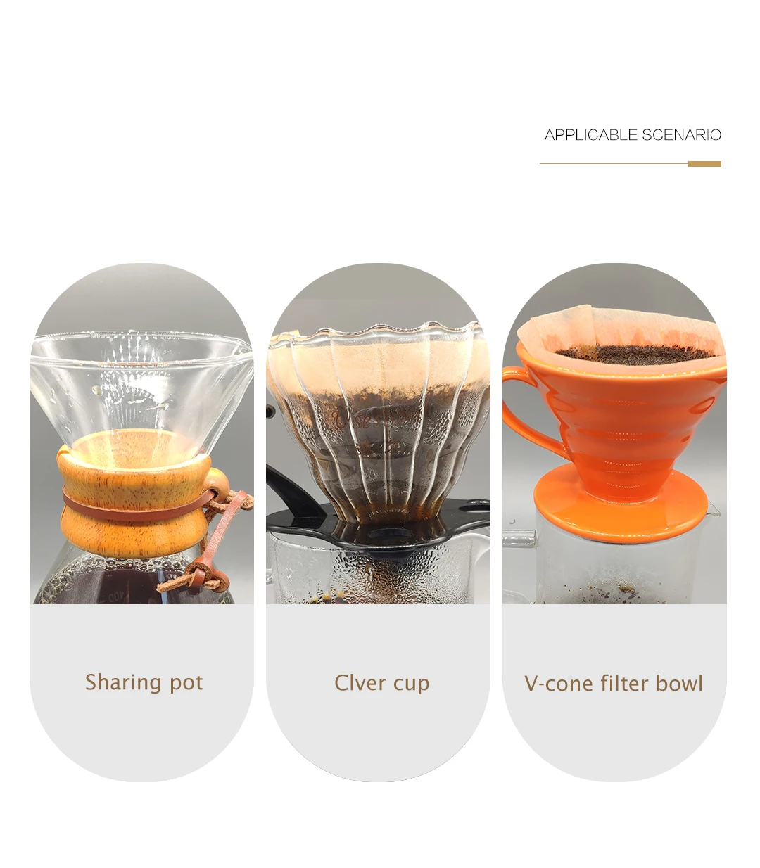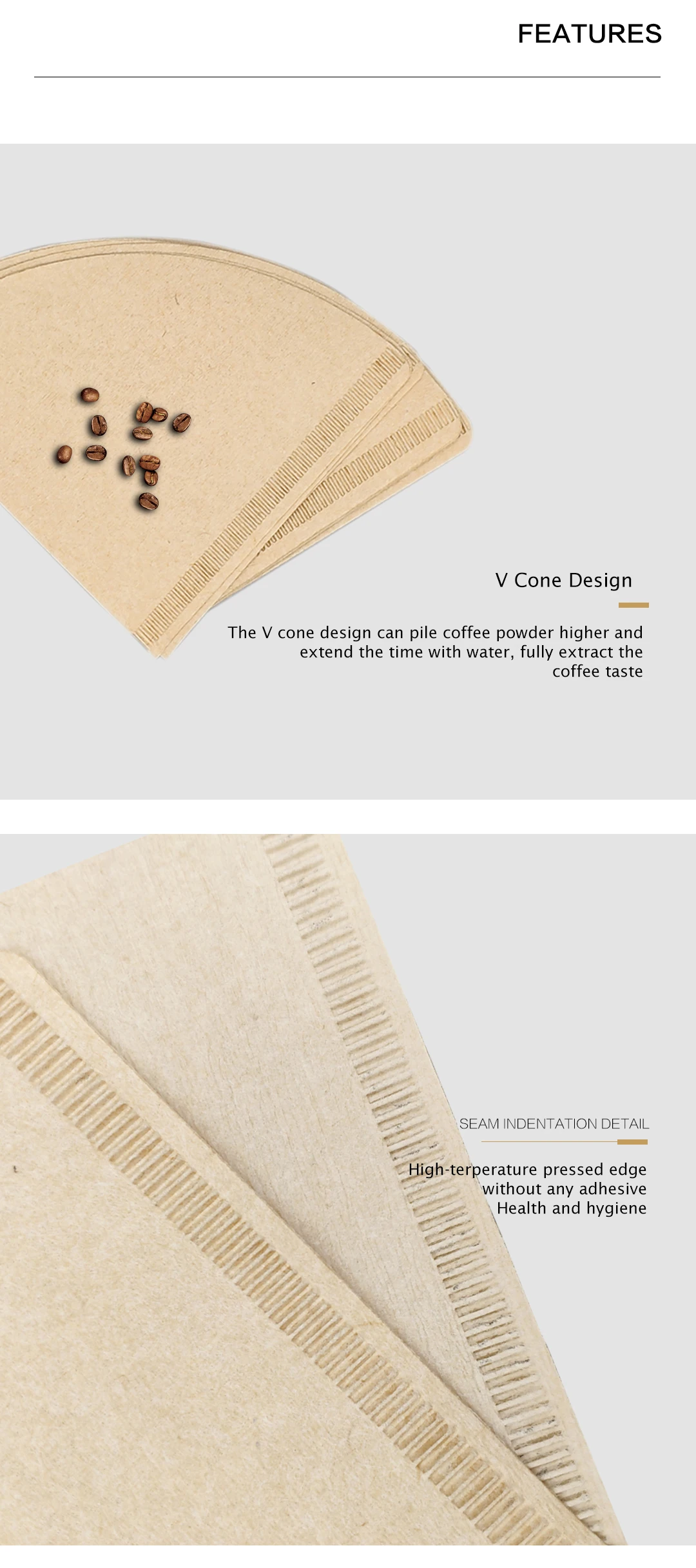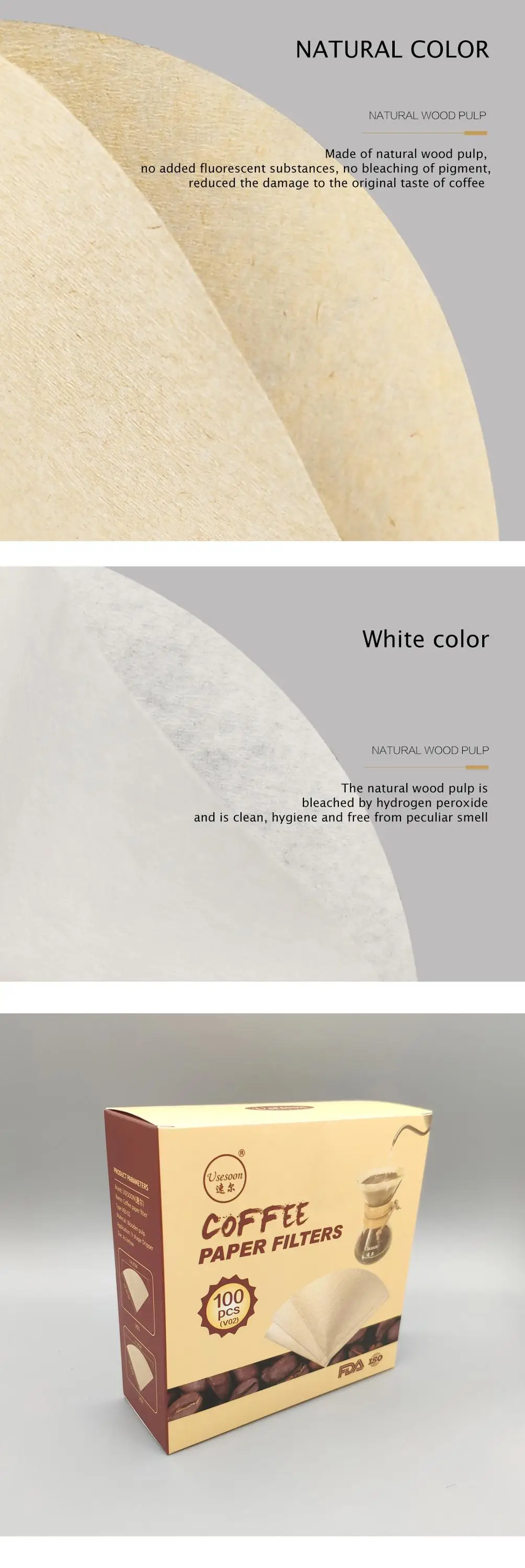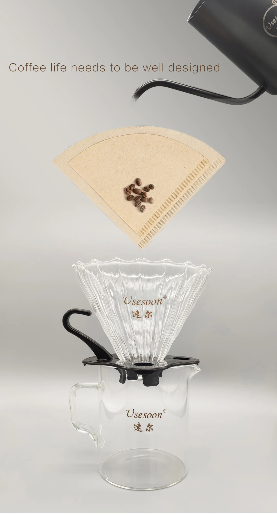 5.How many types coffee filters are you produce till now ?At present, we produce: V shape,Sector shape,Basket wave type,Disk round shape, Pre-folded type, Hanging ear filter bag.