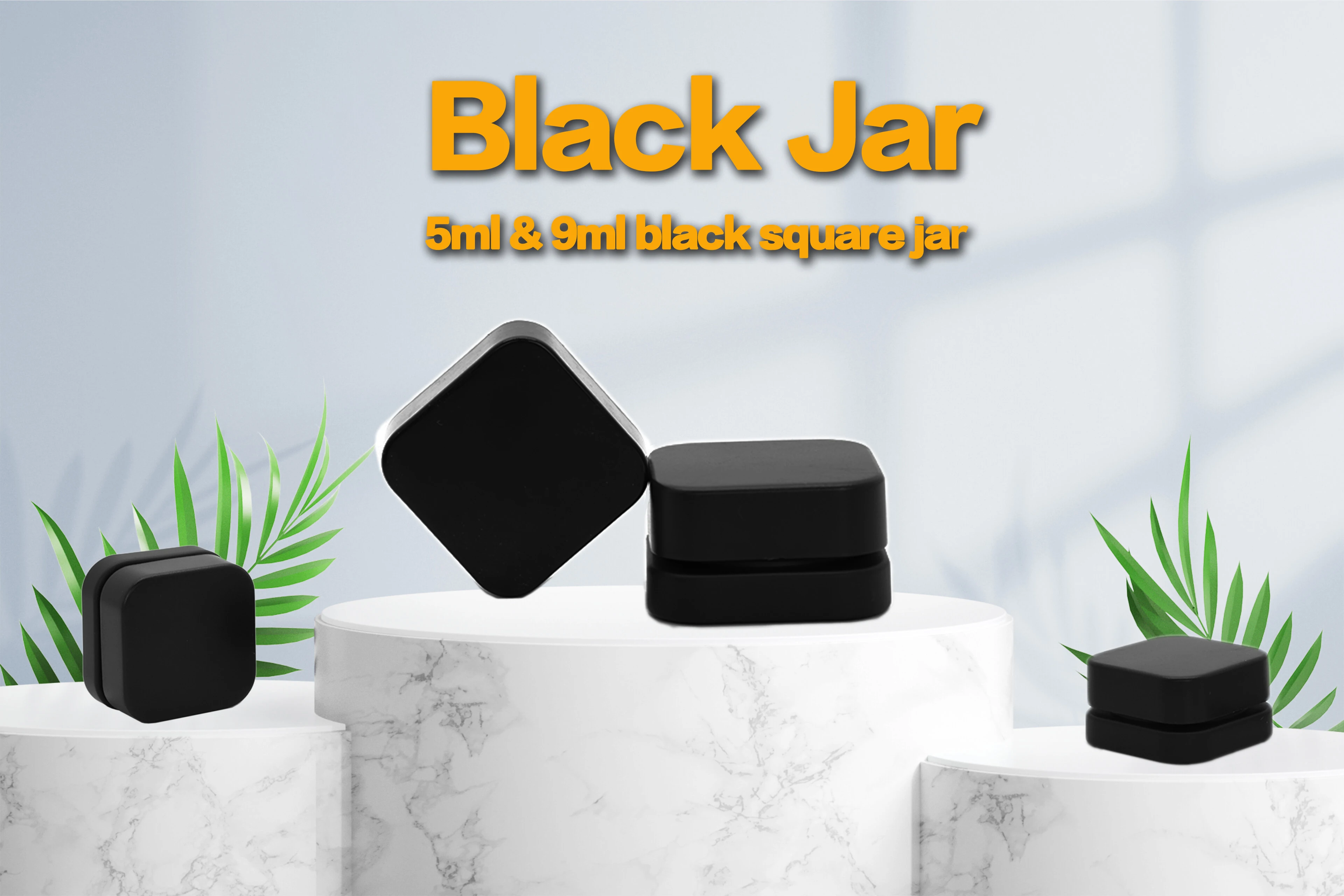 5ml & 9ml black glass square jar with child resistant black lid