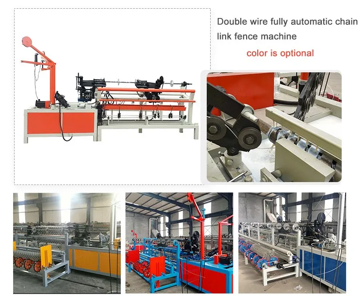 Double wire full automatic chain link fence machine adopts double wire feeding system,it can weave hole size from 30*30mm to 120*120mm with wire diameter from 2.0mm to max 5.0mm.The machine need to working with soft wire and has high production capacity.