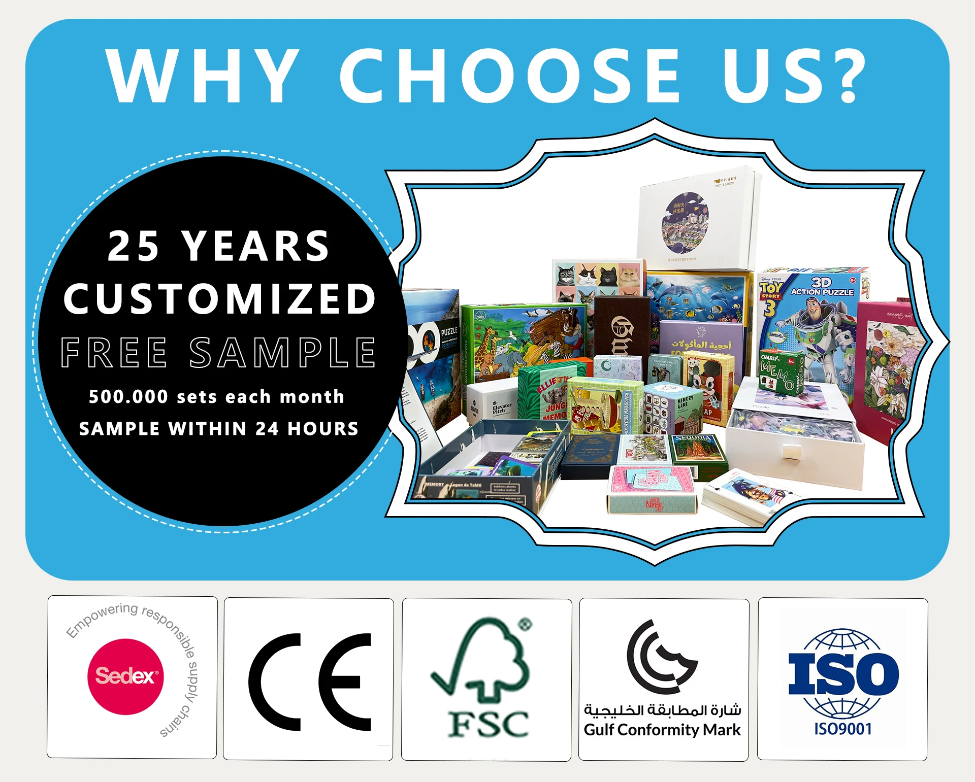 Material | Puzzle:250gsm CCNB+1000gsm greyboard Box:157gsm C2S+900gsm greyboard+250gsm CCNB |