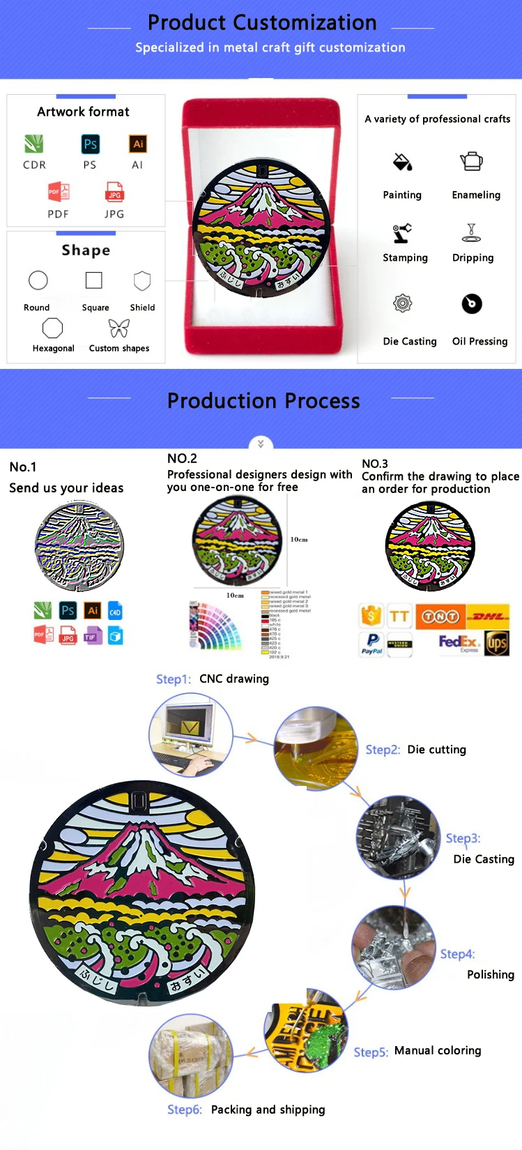 Mold cost | US$75 within 1.5'' size, based on customize size. |