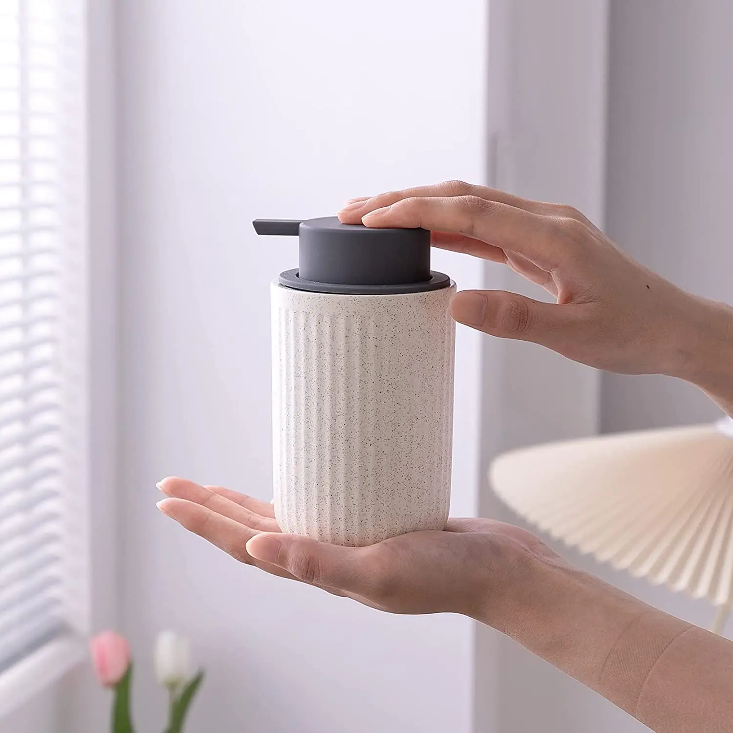 Name | Beige Ceramic Hand Soap Dispenser Speckled Rippled Bubble Up Foam Dispenser Porcelain Lotion Bottle with Grey Pump |