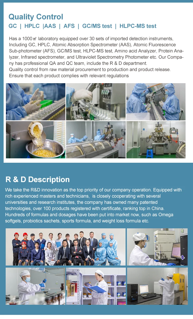 1. You can order our formula products or propose your specific needs, and our R&D technical team will help you create new formulas. 2. Provide your own formula, and we produce it completely as required. 3. Our brand products can also use your private label. The product specifications, active ingredients, functions, dosage forms, logo, labels, internal packaging, outer packaging, gift boxes can be customized.