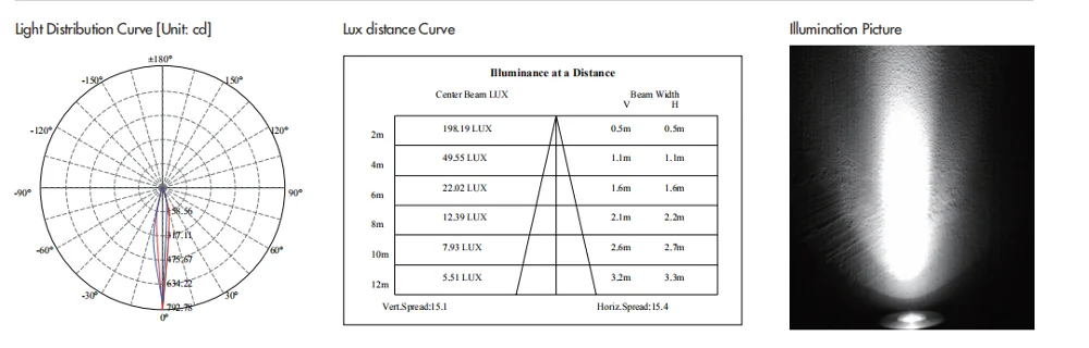 .25° ,15°,38,°,45°,60°,120° beam angle as options